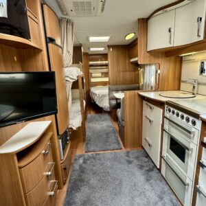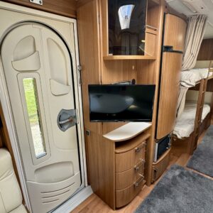 Vaunun keskivaiheilla on kerrossänky ja pieni pöytäryhmä. Pöytäryhmän päälle saa kädenkäänteessä ”taiottua” mukiinmenevän sängyn yhdelle pienemmälle nukkujalle.