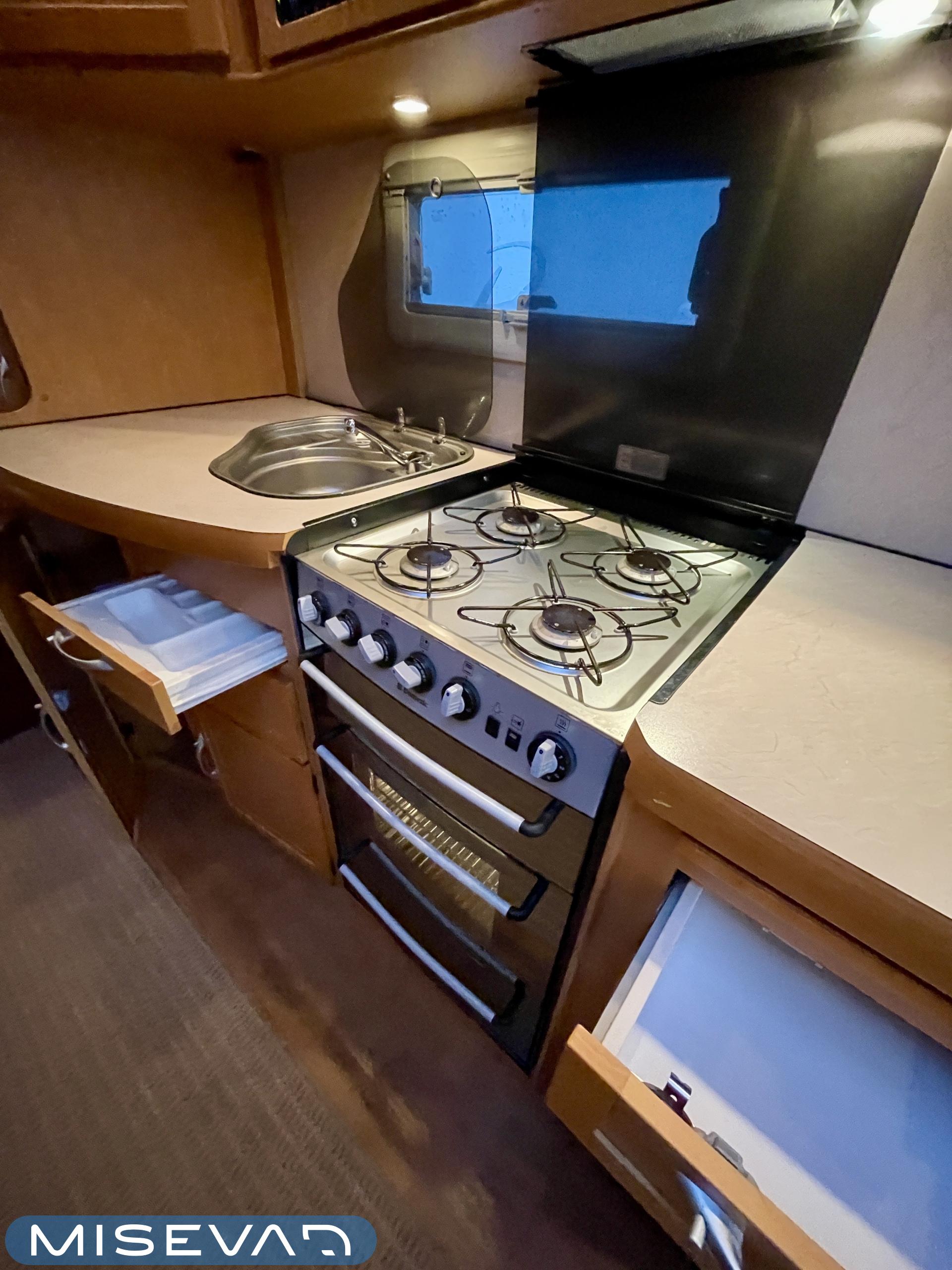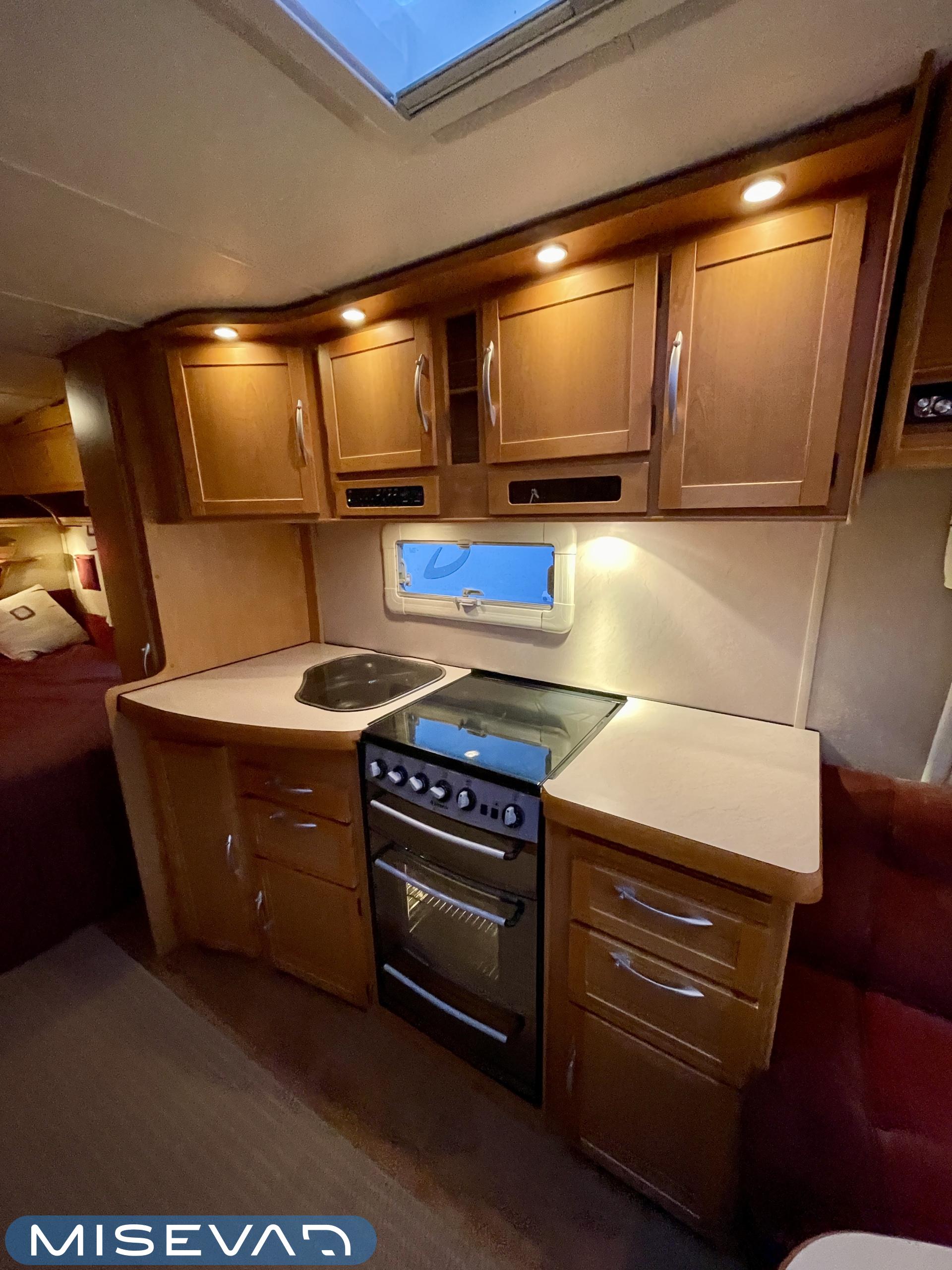 Alde, Sähköpatruuna, CD-soitin, Erikoisvanteet, Eristetty harmaavesisäiliö, Jääkaappi, Kaasu-uuni, Kasetti WC, Kasettiverhot, Kattoluukku, Lattialämmitys, Liesi, Lämminvesiboileri, Nestekiertolämmitys, Pakastelokero, Parivuode, Pesuallas, TV-antenni tai lautasantenni, Tukijalat, Lattialämmitys (nestekierto), kwh-mittari, harmaavesisäiliön lämmitys, jenkkijääkaappi, liesituuletin, kaasun ulosotto, sähkön ulosotto, Keskusimuri, Mikroaaltouuni