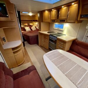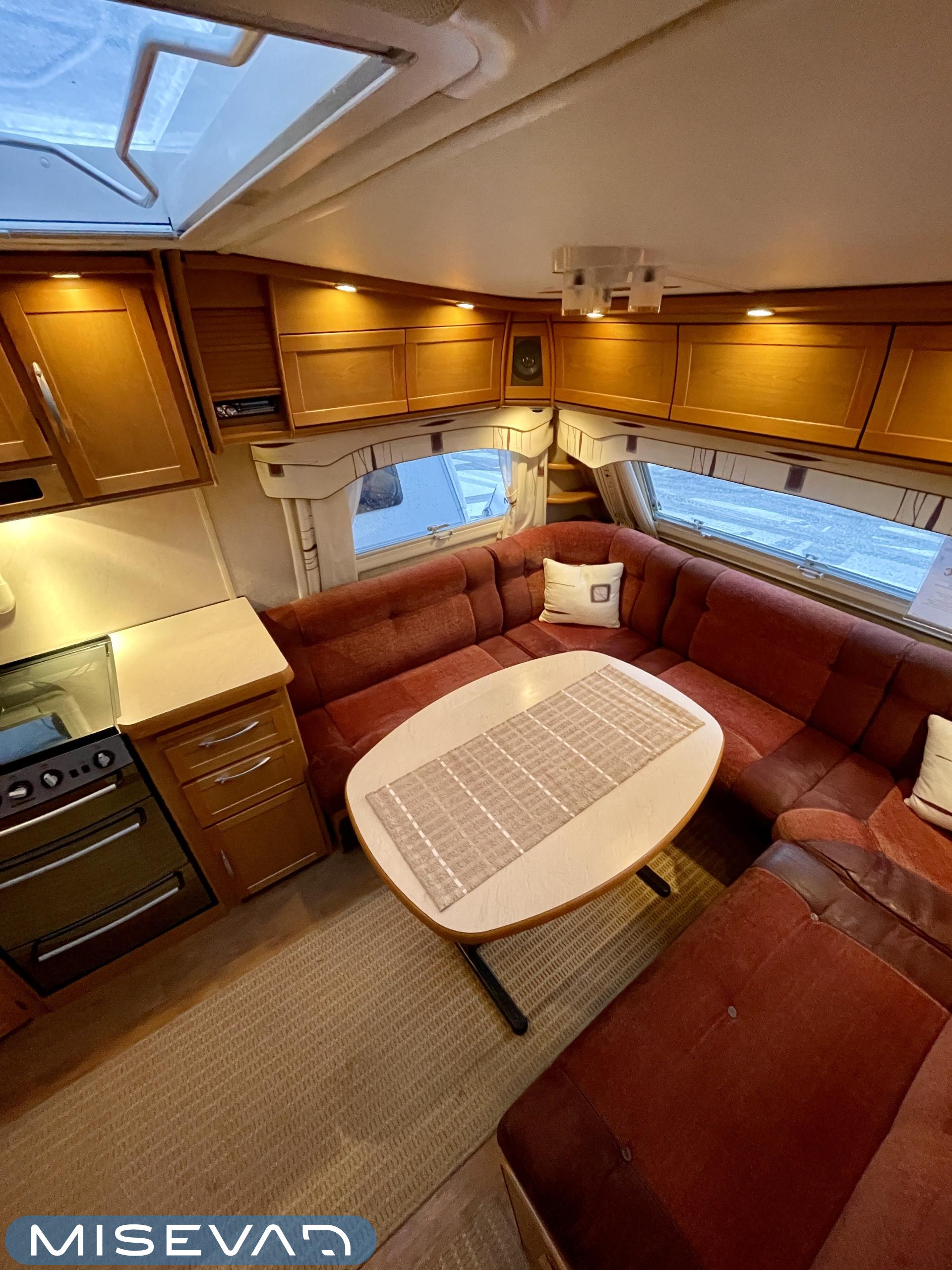 Tämä Kabe Royal kuuluu vaunujen aatelistoon. Huippulämmin pakkasilla ja luxus keittiö puhumattakaan sängyn mukavuudesta. Tämä kuninkaallinen sopii kausipaikalle, eikä vaunu ole liian iso perässä vedettäväksikään. Hyvä varustetaso ja yhden aiemman omistajan huolenpito tekee tästä vaunusta todellisen yksilön. Tule ostamaan pois tämä helmi. Tässä et rahojasi hukkaan heitä.