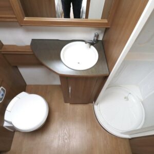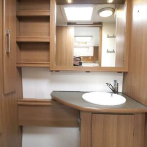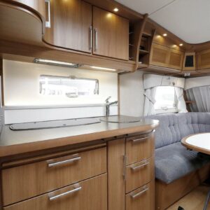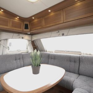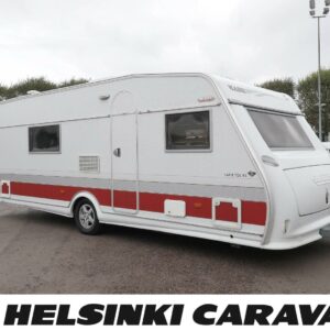 Tilava ruotsalainen Kabe jossa on koko vaunun levyinen pesuhuone takana. Tällä vaunulla tarkenee taatusti kovimmillakin talvipakkasilla!