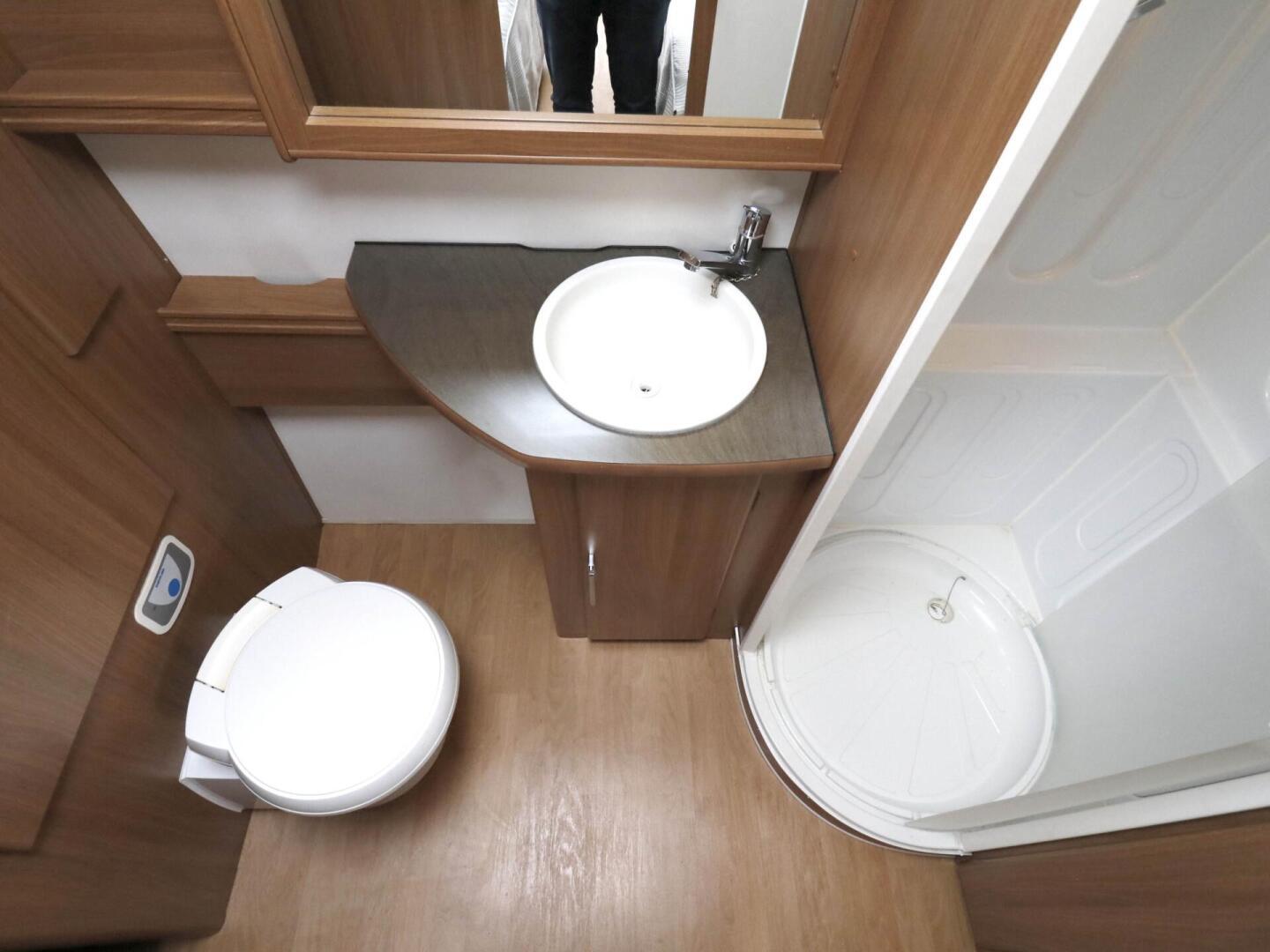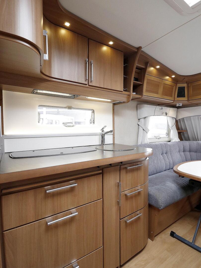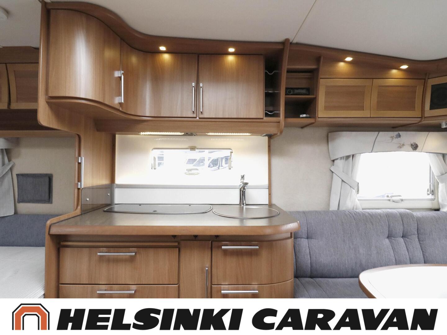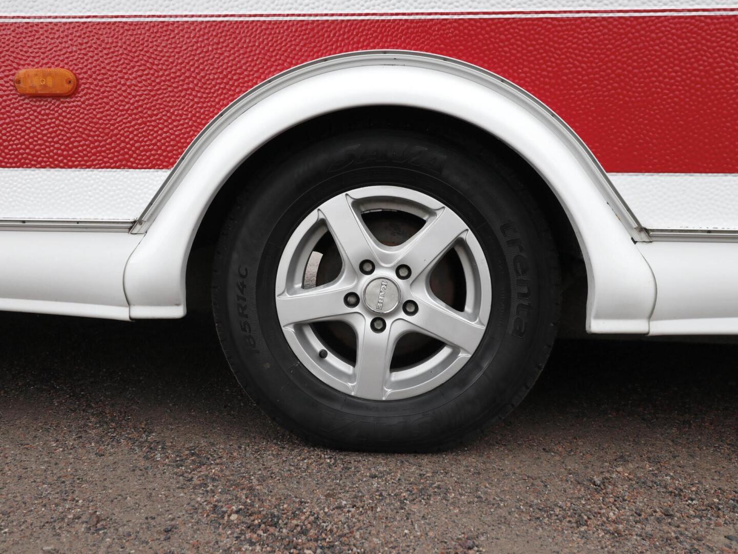 Tilava ruotsalainen Kabe jossa on koko vaunun levyinen pesuhuone takana. Tällä vaunulla tarkenee taatusti kovimmillakin talvipakkasilla!