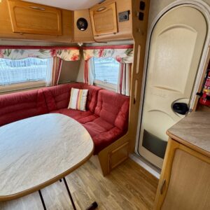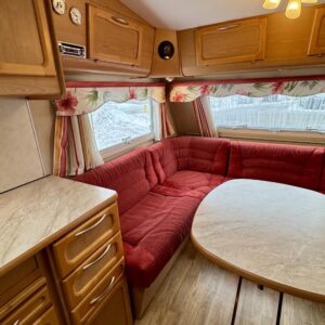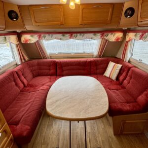 King Size- mallin leveys tuo sisätiloihin mukavaa avaruutta. Vaunun etuosasta löytyy pöytäryhmä, jonka ympärille mahtuu isompikin porukka maailman menoa hämmästelemään. Pöytäryhmästä saa tarpeen vaatiessa sijattua toisen parivuoteen.