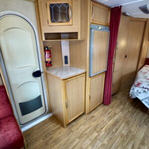 Keskivaiheilta vaunua löytyy keittiösaareke ja runsaasti erimuotoista säilytystilaa.