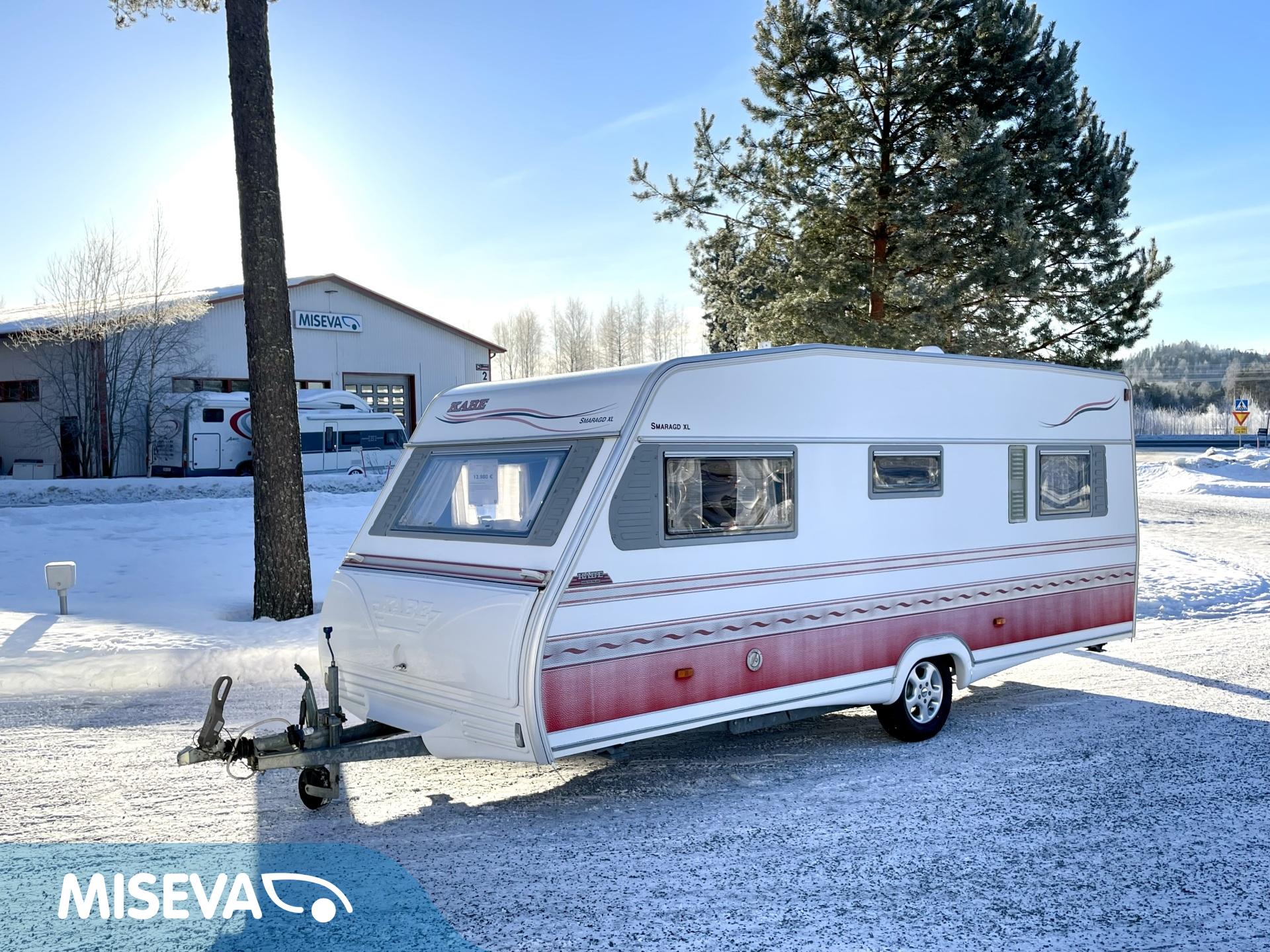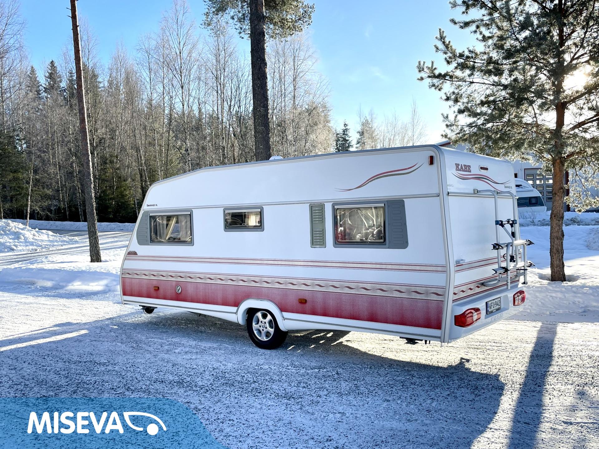 Kevyt ja lämmin Kabe-vaunu parivuoteella ja isolla U-ryhmällä.