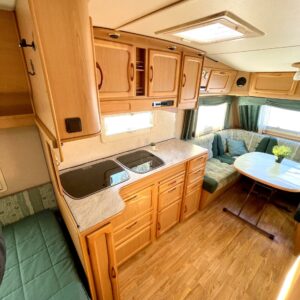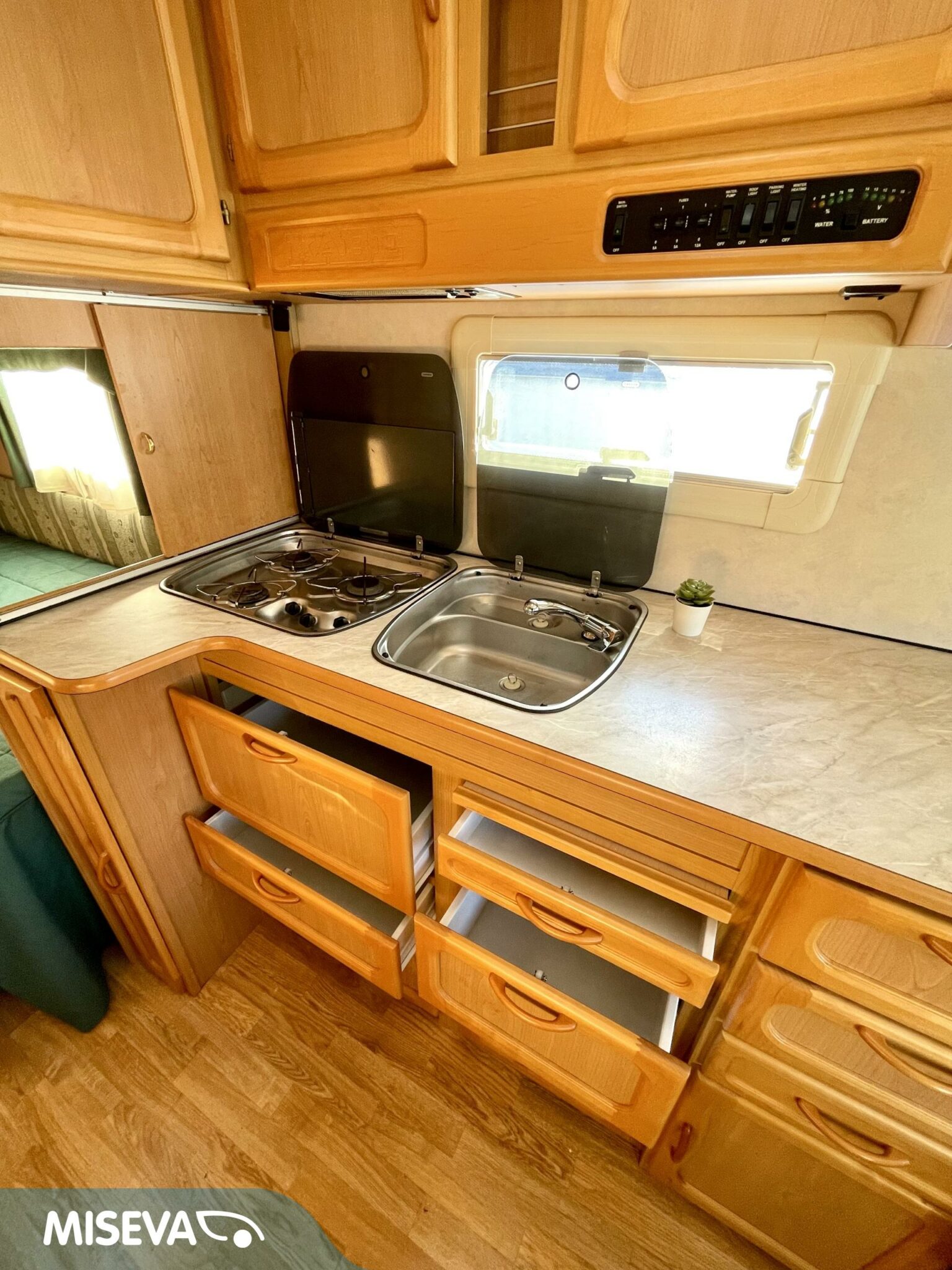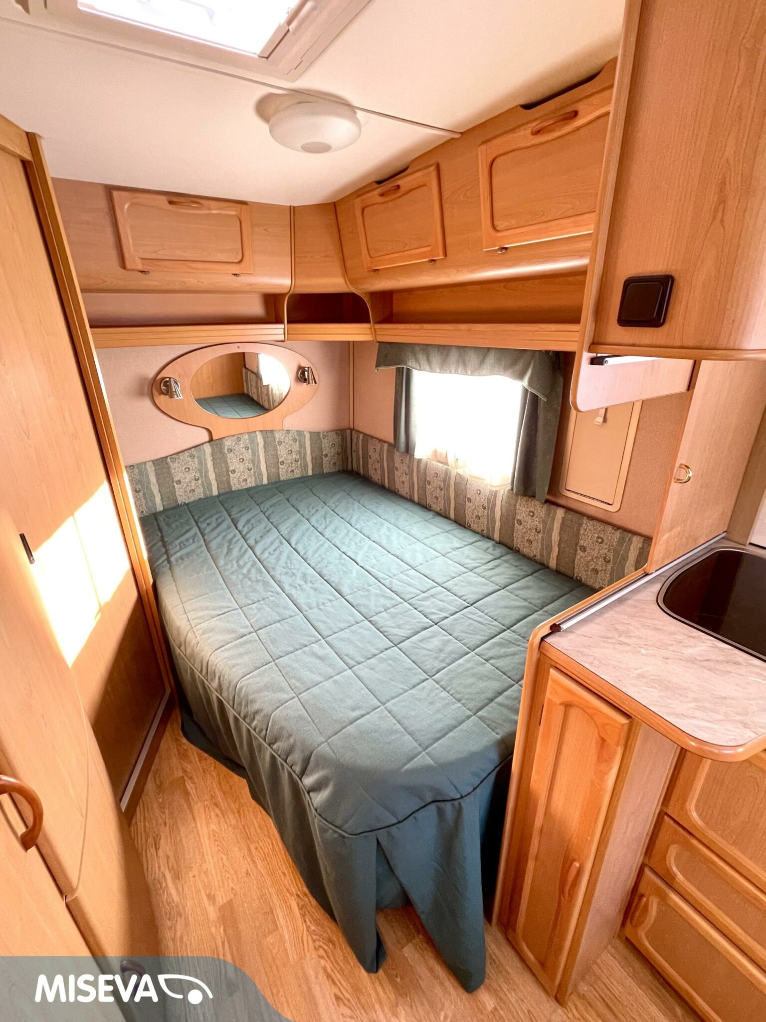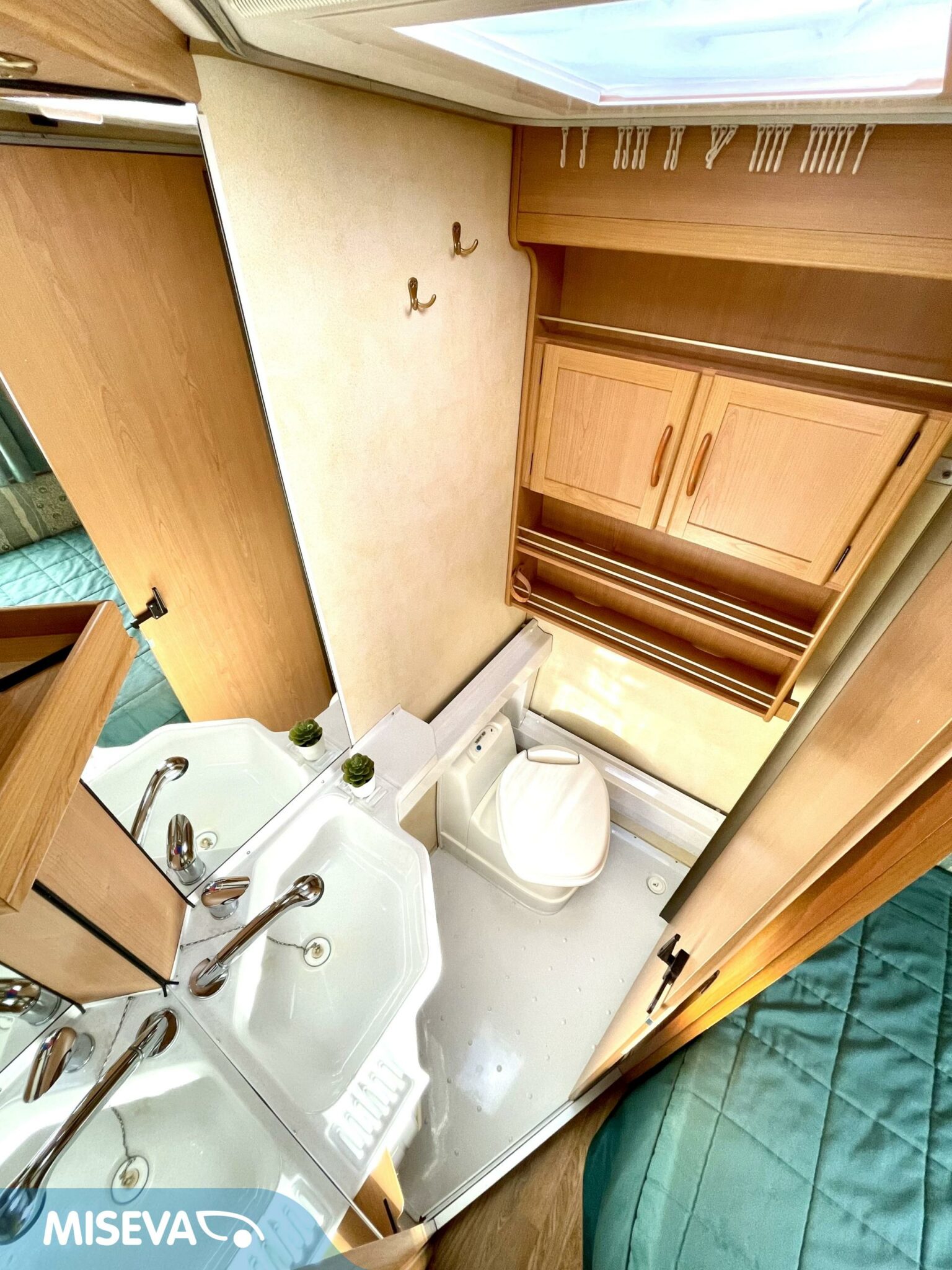 Alde, Jääkaappi, Kasetti WC, Lattialämmitys, Liesi, Lämminvesiboileri, Markiisi, Nestekiertolämmitys, Parivuode, Sähköpatruuna, Tukijalat, Kasettiverhot, Kattoluukku, Pakastelokero, Erikoisvanteet, Pesuallas, Radio, TV-antenni tai lautasantenni