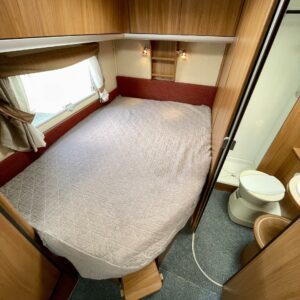Tässä matkailuautossa yhdistyvät toimiva pohjaratkaisu ja laadukkaat varusteet. Takana sijaitseva ranskalaistyyppinen parivuode tarjoaa hyvät yöunet, ja sen vieressä on erillinen WC sekä suihkutila, jotka tuovat lisämukavuutta matkaan.