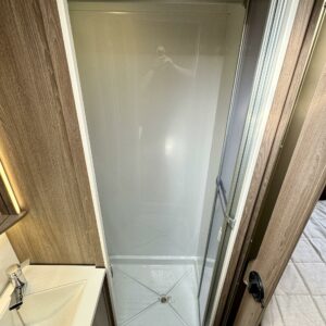 Peräpäästä löytyy muhkeiden erillisvuoteiden lisäksi todella toimivat WC/ pesutilat erillisellä suihkunurkkauksella.