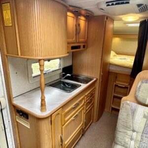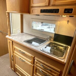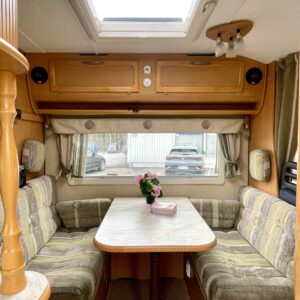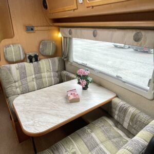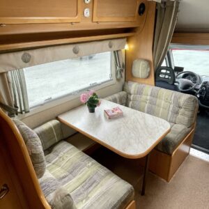 CD-soitin, Erikoisvanteet, Jääkaappi, Kasetti WC, Kasettiverhot, Kattoluukku, Keskuslämmitys, Liesi, Lämminvesiboileri, Markiisi, Nestekiertolämmitys, Ohjaustehostin, Pakastelokero, Parivuode, Pesuallas, Polttoainekäyttöinen lisälämmitin, Radio, Suihku, Sisätilanpistoke, Sähköpatruuna, Alde, Lattialämmitys (nestekierto), Ilmastointi (asuintila), Webasto/Eber, Kesärenkaat, 1 x kevytmet.vanteet, kwh-mittari, astinlaudat, kaasun ulosotto