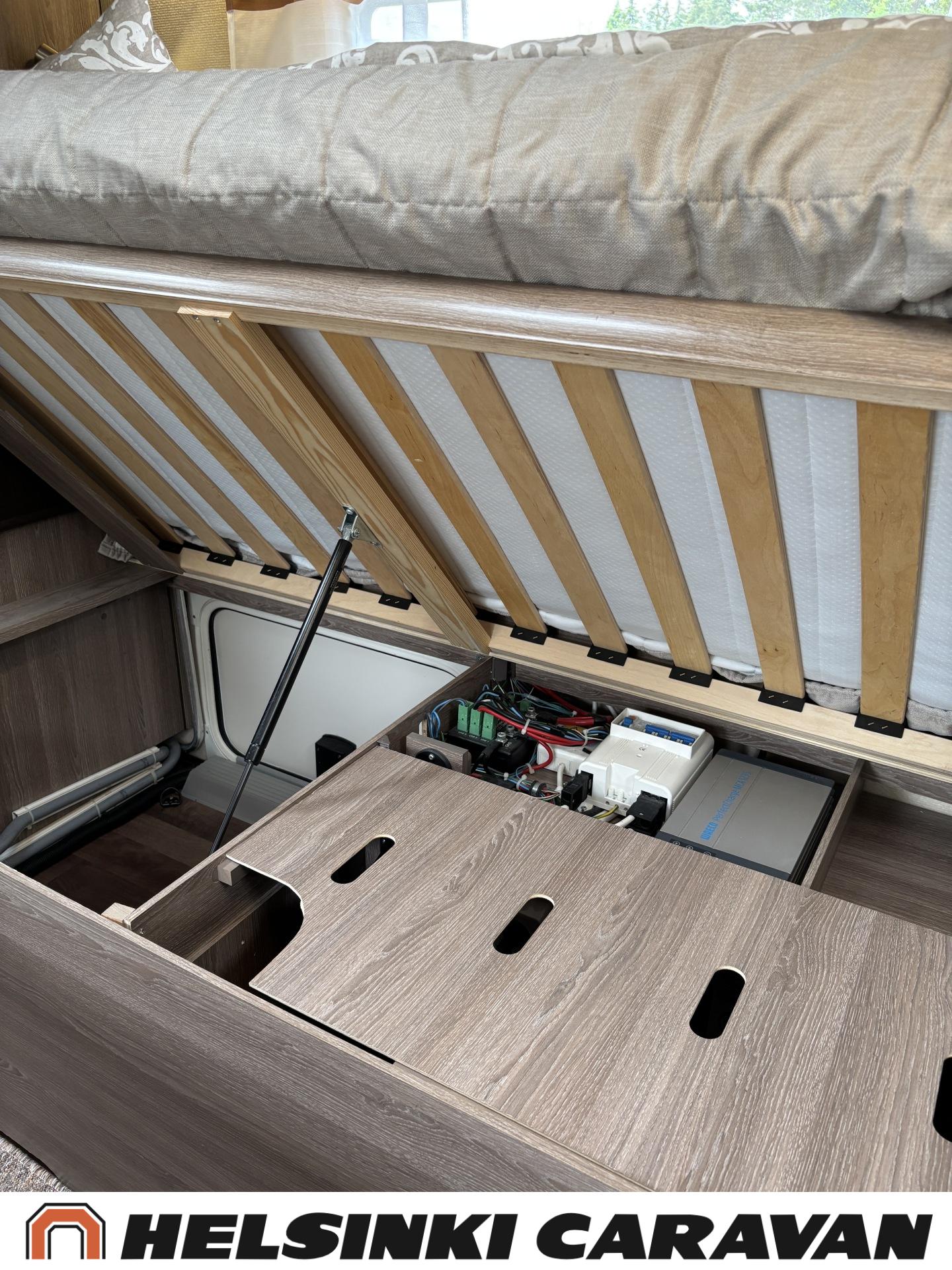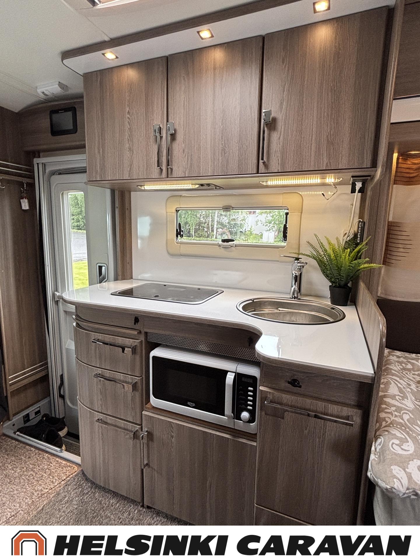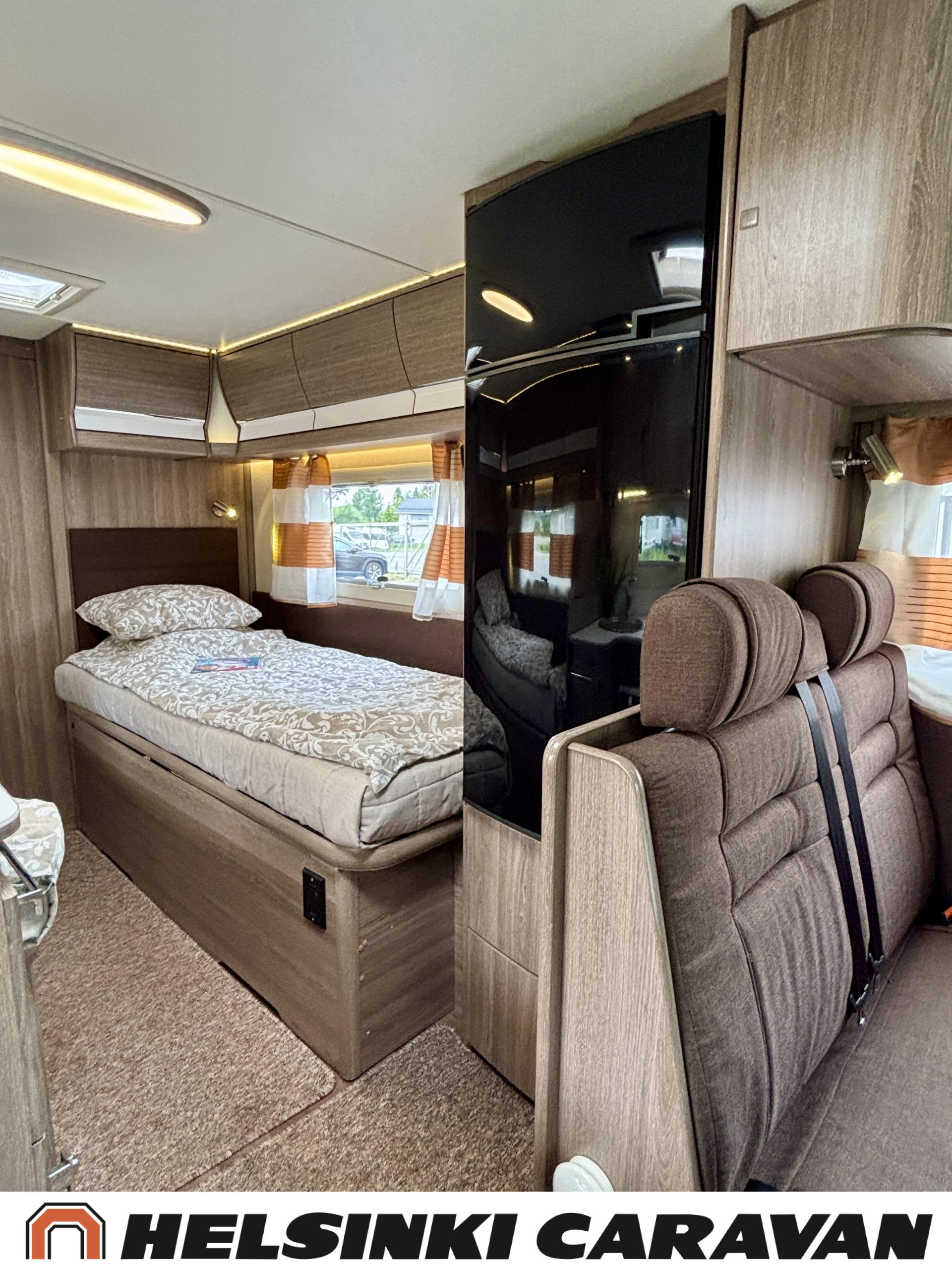 ABS-jarrut, Airbag, Ajotietokone, Alde, Erikoisvanteet, Ilmastointi: Manuaalinen, Ilmastointi ajotilassa, Erillisvuoteet, Eristetty harmaavesisäiliö, Kasetti WC, Jääkaappi, Kasettiverhot, Kattoluukku, Lattiamatot asunto-osassa, Liesi, Lattialämmitys, Käynnistyksenesto, Keskuslämmitys, Keskuslukitus: Kaukosäätöinen, Lohkolämmitin, Lämminvesiboileri, Markiisi, Mikroaaltouuni, Nestekiertolämmitys, Ohjaustehostin, Pakastelokero, Radio, Pysäköintikamera, Suihku, Sähkökäyttöiset ikkunat, Sähköpatruuna, Sähköpeilit, Turbo, Vakionopeudensäädin, Aggregaatti