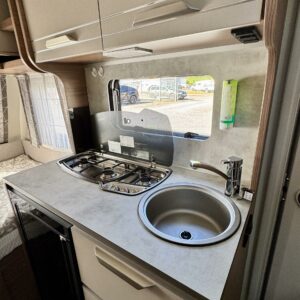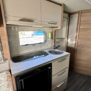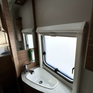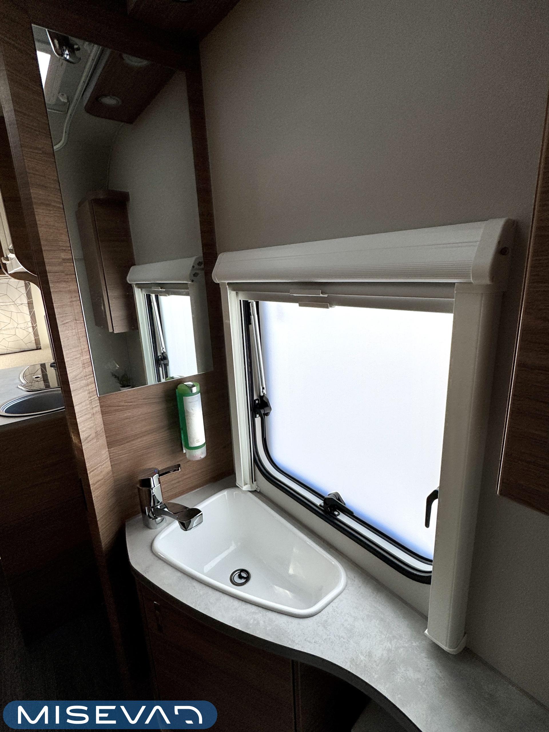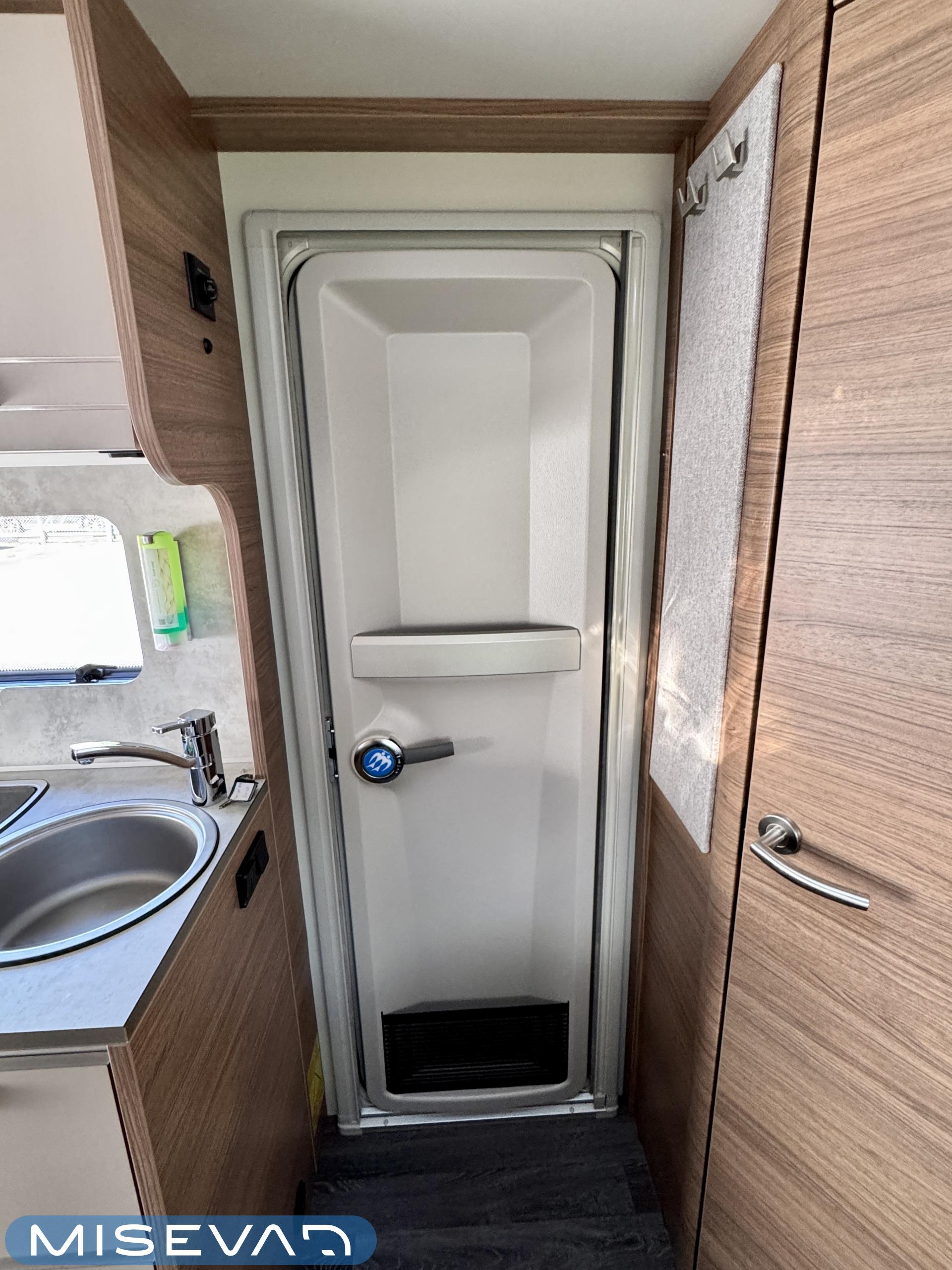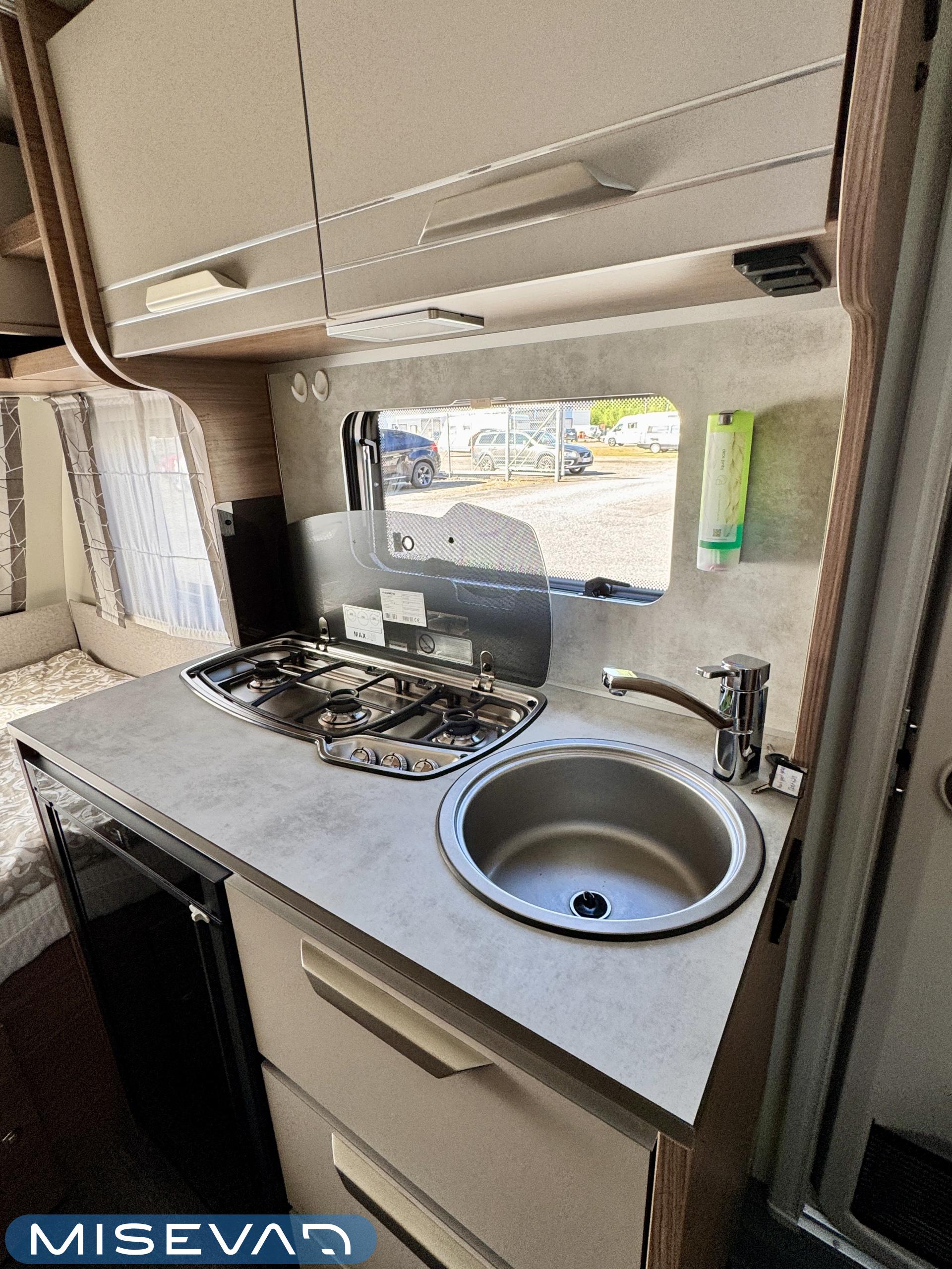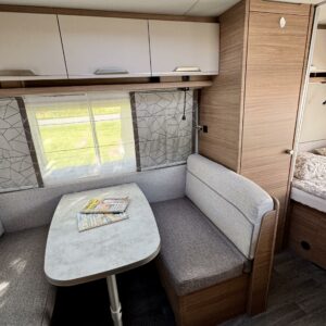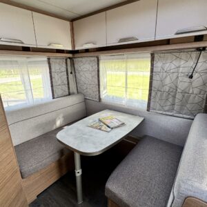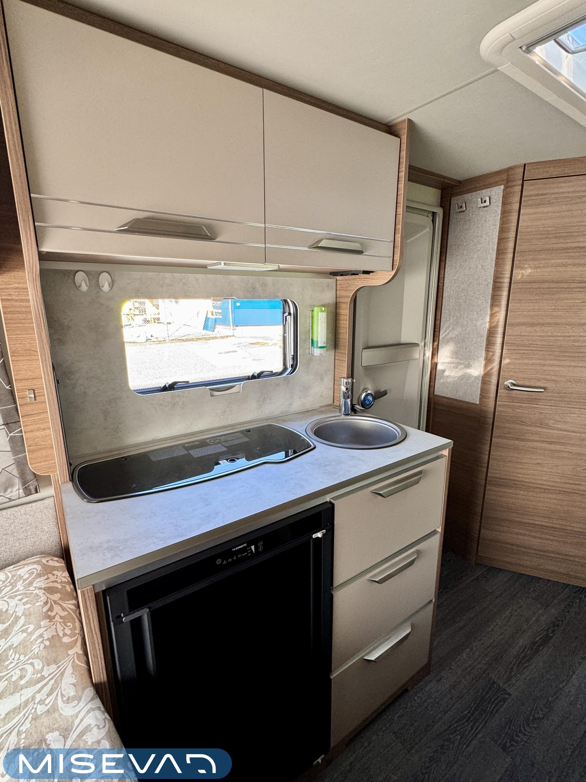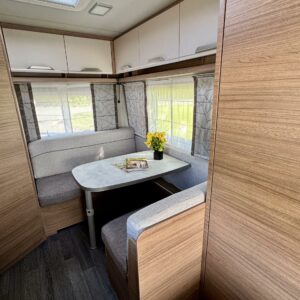 Uudenakarhea (käyttöönotto 6/25) näpsäkkä Knaus ja tosiaan hohtaa uutuuttaan, eli tähän pätee hienosti vanha fraasi ”vaihtoehto uudelle”. Edessä on poikittainen parivuode minkä alle jää säilytystiloja. Säilytystiloissa päästään operoimaan ulkopuolisen luukun kautta, tai sitten sisätilojen kautta. Keskelle asemoituu keittiö mistä löytyy normaali matkailuvaunun keittiövarustus. Takaosaan on sijoitettu vastakkain istuttava pöytäryhmä, sekä WC/kylpyhuonetilat. Pöytäryhmästä saadaan vuode aikuiselle tai pari pienempää lasta tässä mahtuu myös yöpymään.