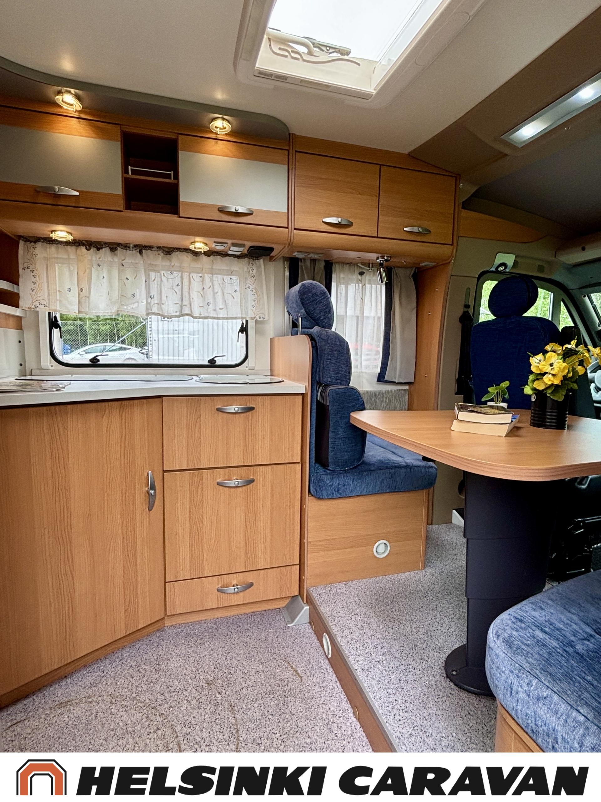 ABS-jarrut, Kattoluukku, Airbag, Huoltokirja, Ilmastointi ajotilassa, Jääkaappi, Kasetti WC, Kasettiverhot, Truma, Vetokoukku, Markiisi, astinlaudat, Ilmastointi (asuintila), Polkupyöräteline, Sähköpatruuna, Lattialämmitys