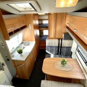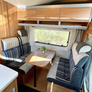 Myynnissä suosittu Knaus alkovi-malli, jossa on takakerrossängyt ja reilusti tilaa matkantekoon. Auto on kompakti pituudeltaan (vain 6,5 m), mutta tarjoaa yllättävän paljon oleskelu- ja säilytystilaa helppo ajaa, mukava asua. Istuinpaikat 6 hengelle (rekisteröity 6:lle)