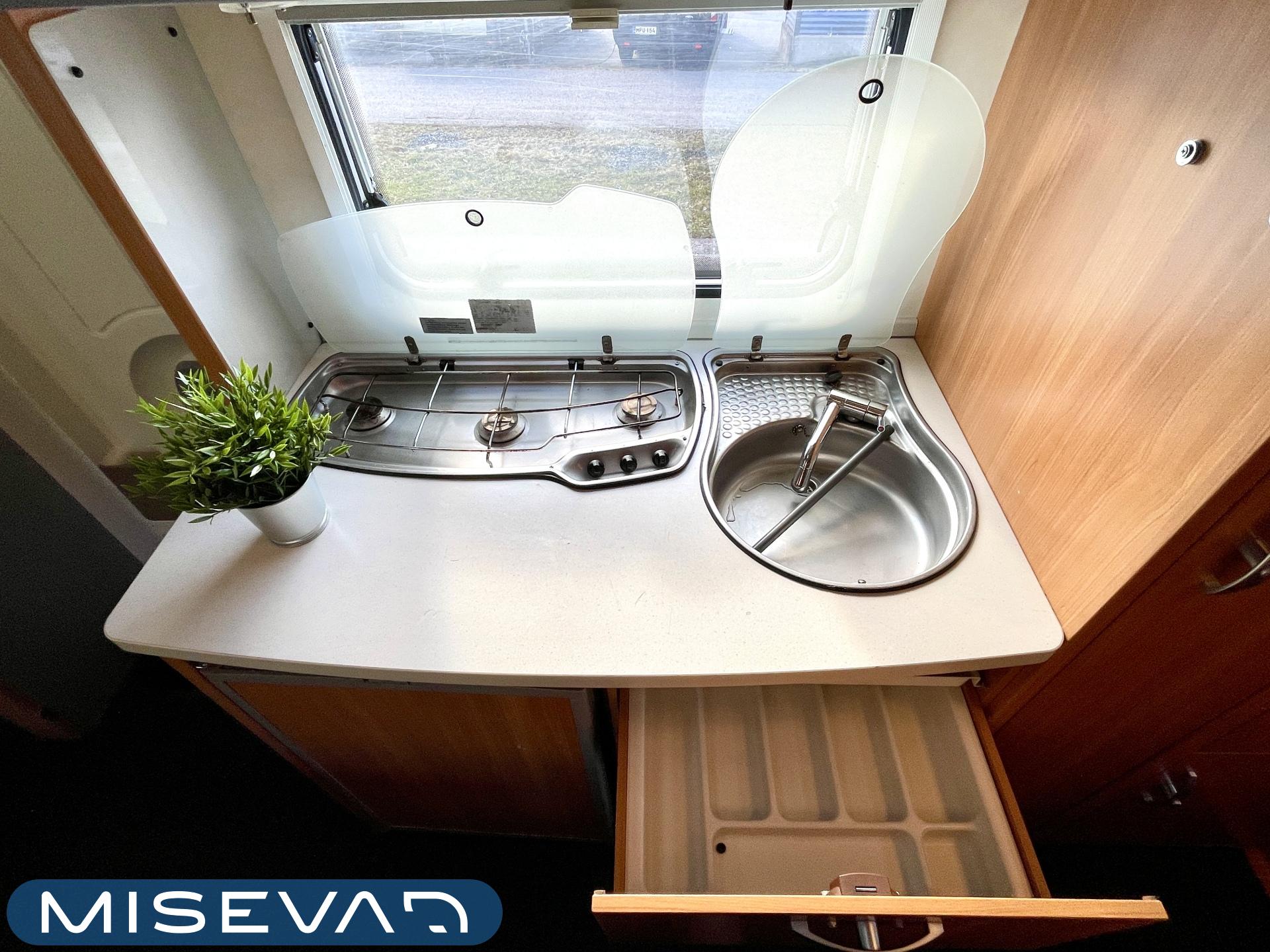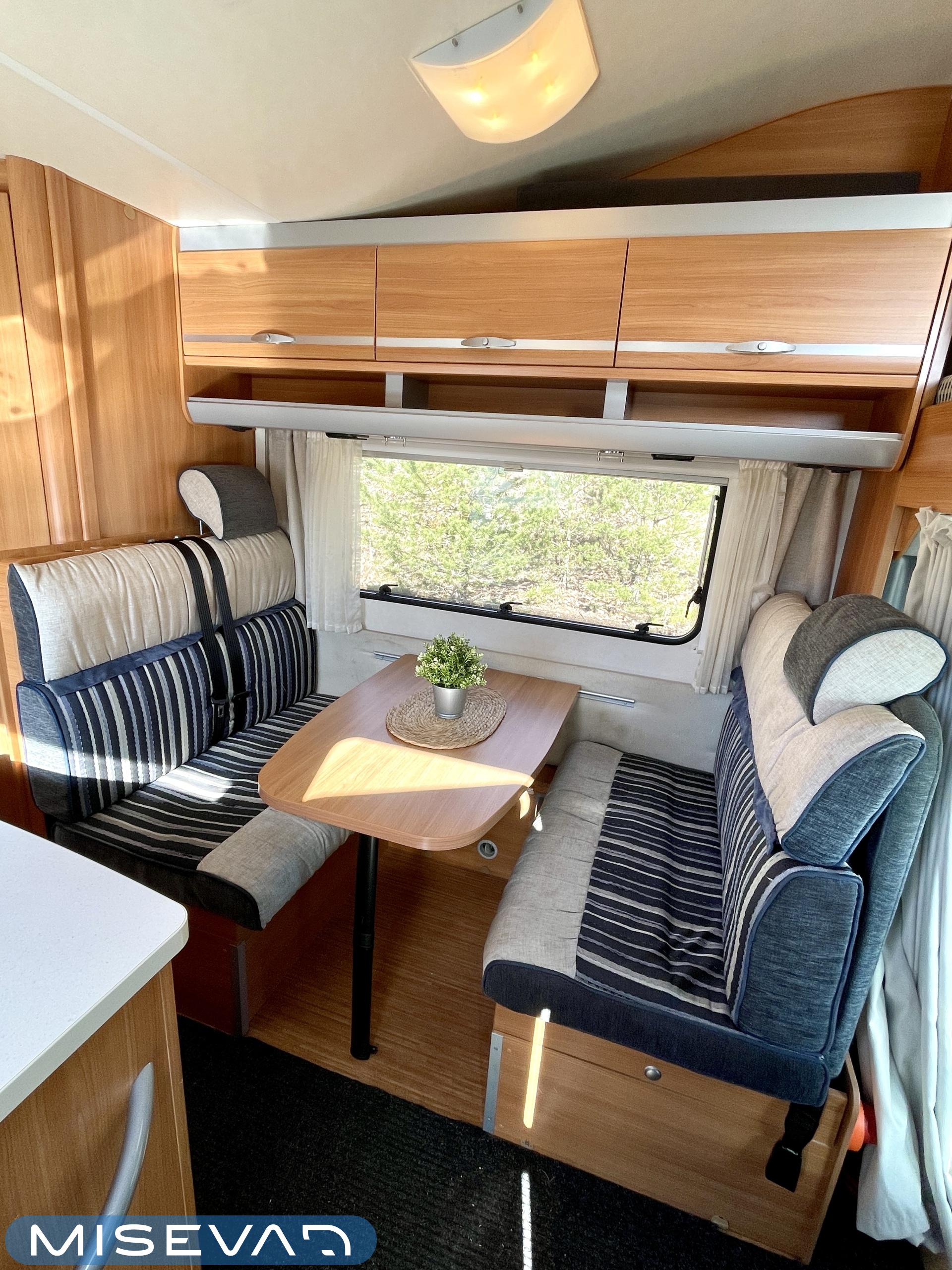 ABS-jarrut, Airbag, Erikoisvanteet, Huoltokirja, Ilmastointi ajotilassa, Jääkaappi, Kasetti WC, Kasettiverhot, Kattoluukku, Kerrossänky, Keskuslukitus: Kaukosäätöinen, Käynnistyksenesto, Liesi, Lämminvesiboileri, Markiisi, Navigaattori, Ohjaustehostin, Pakastelokero, Parivuode, Radio, Sisätilanpistoke, Sähkökäyttöiset ikkunat, Sähköpeilit, TV-antenni tai lautasantenni, Trumatic, Turbo, Vakionopeudensäädin