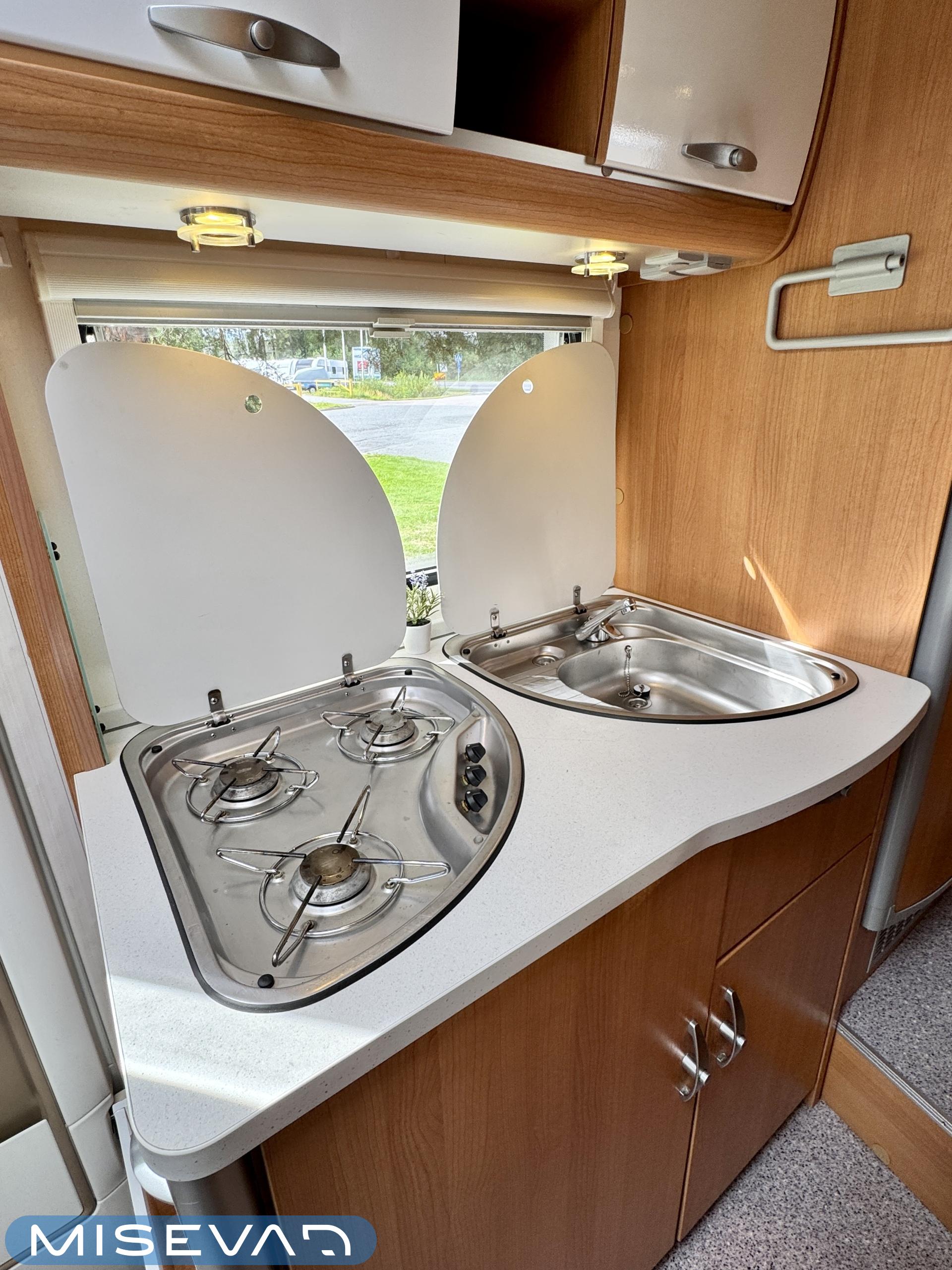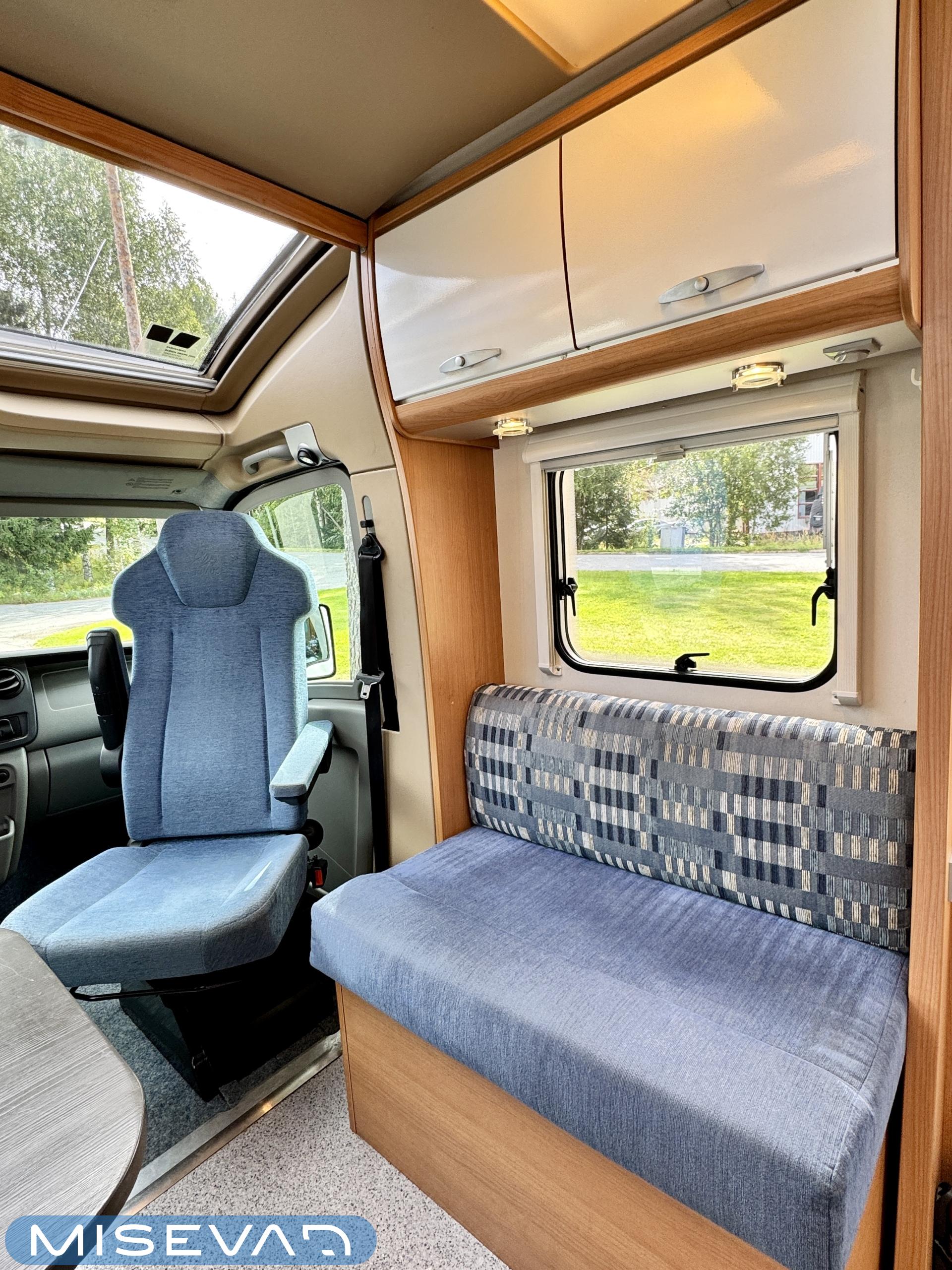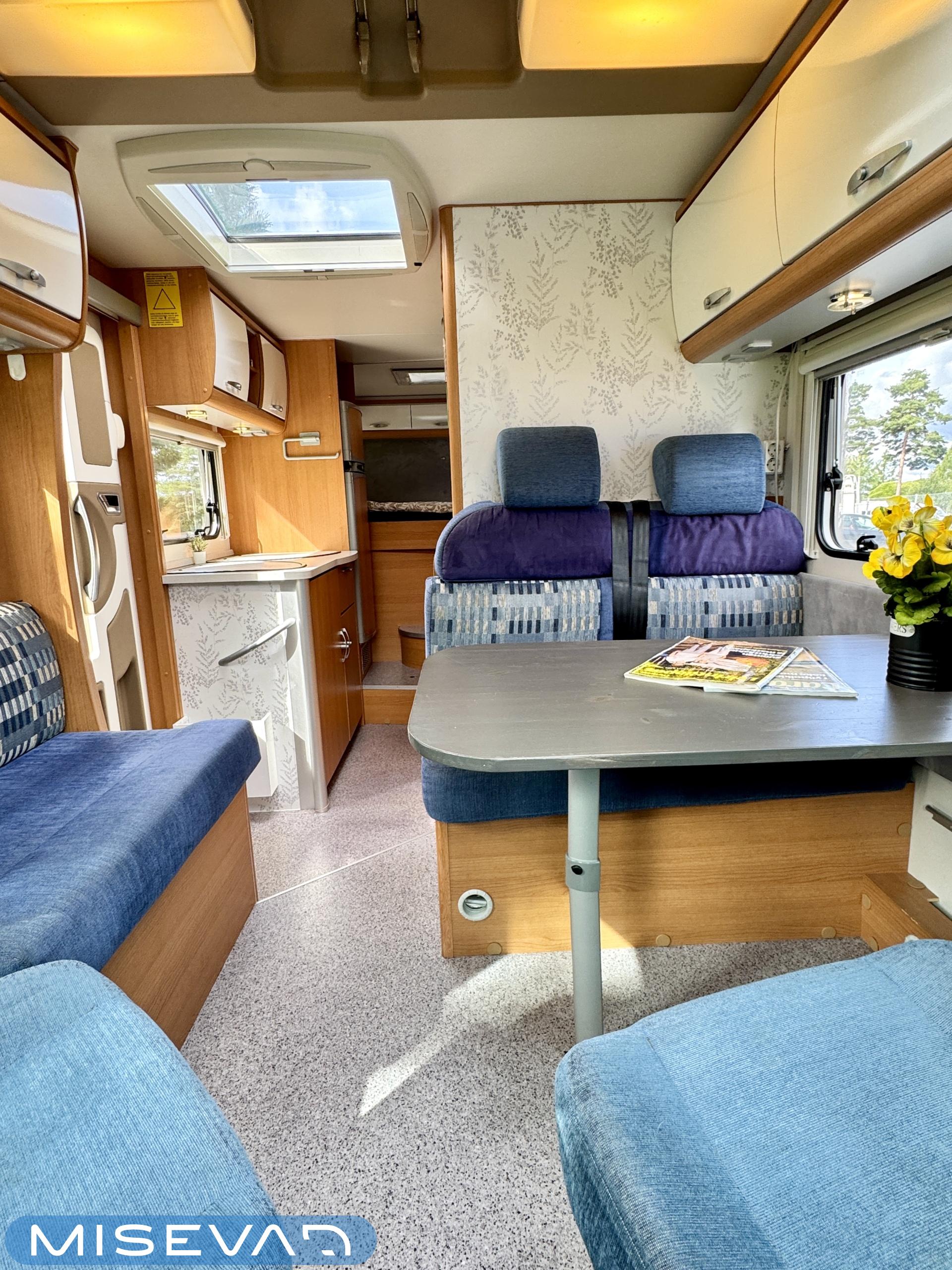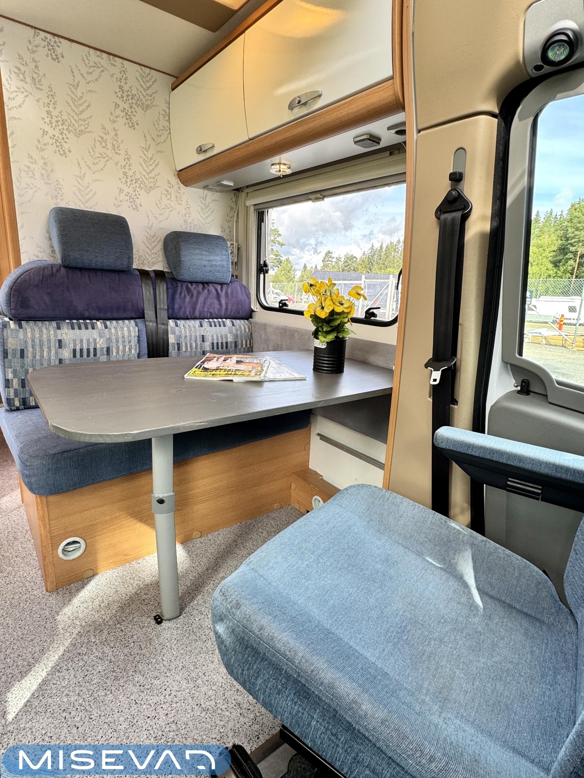 Truma, ABS-jarrut, Airbag, Eristetty harmaavesisäiliö, Jääkaappi, Kasetti WC, Kasettiverhot, Kattoluukku, Liesi, Lämminvesiboileri, Markiisi, Ohjaustehostin, Pakastelokero, Parivuode, Pesuallas, Pysäköintikamera, Pyöräteline, Radio, Suihku, Sähkökäyttöiset ikkunat, Sähköpeilit, TV-antenni tai lautasantenni, Turbo, Vetokoukku, Ilmastointi (ohjaamo), ohjaamon kasettiverhot, jenkkijääkaappi