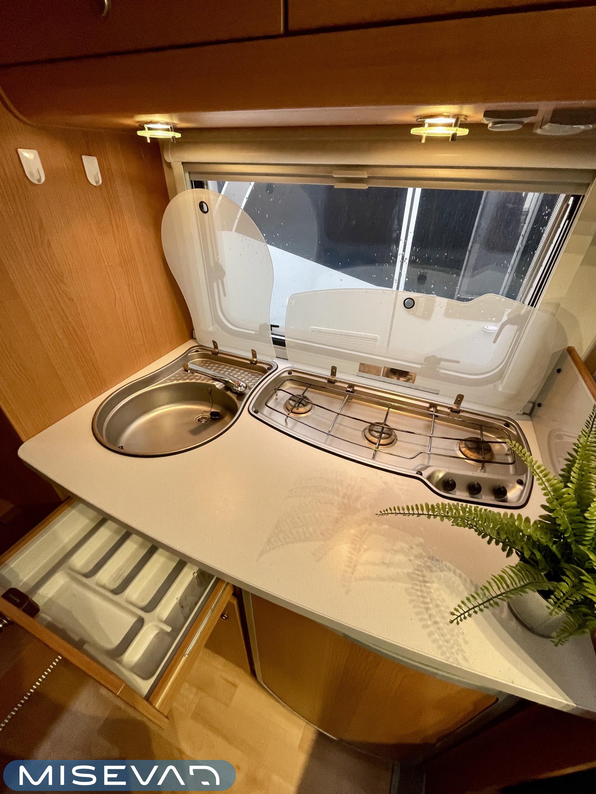 Airbag, ABS-jarrut, Ilmastointi ajotilassa, Ilmastointi: Manuaalinen, Jääkaappi, Kasetti WC, Kattoluukku, Keskuslukitus: Kaukosäätöinen, Liesi, Lämminvesiboileri, Markiisi, Pakastelokero, Ohjaustehostin, Parivuode, Pesuallas, Radio, Trumatic, Pyöräteline