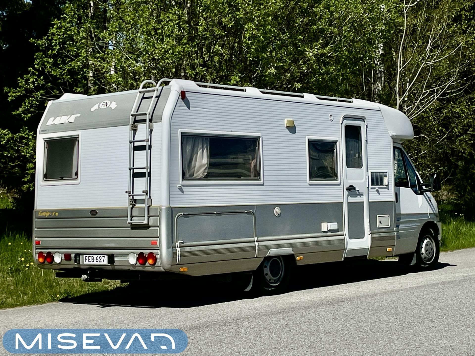 Truma, Jääkaappi, Kaasu-uuni, Kasetti WC, Kasettiverhot, Kattoluukku, Liesi, Lohkolämmitin, Lämminvesiboileri, Ohjaustehostin, Pakastelokero, Parivuode, Pesuallas, Radio, Suihku, Sähkörappu, Turbo, Vetokoukku, Erikoisistuimet pöytäryhmässä, Mukana irroitettava Thulen polkupyöräteline, Keskuslukitus: Ilman kaukosäädintä, JP-huollot ok