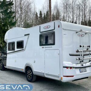 Ihanteellinen LMC perheelle jossa 4 henkeä. Vuoteet ja ruokailutila valmiina puhumattakaan hulppeasta tavaratilasta.