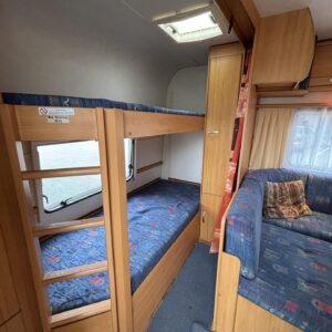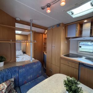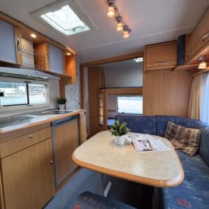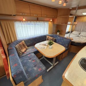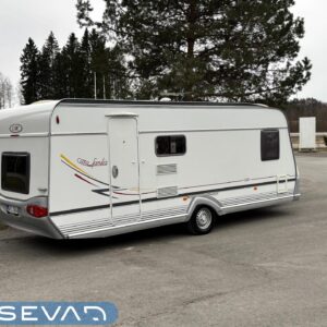 Hieno LMC:n perhemallin vaunu toisen käyttäjäomistajan (tällä vuodesta 2010) hellän huolenpidon jäljiltä. Tähän majoittaa hienosti jopa kuusi henkilöä ja vaunusta löytyy myös runsaasti säilytystiloja. Etuosassa on pitkittäinen parivuode, sekä kylppäritilat. Keskelle sijoittuu keittiö ja U-ryhmä. Pöydän alas laskemalla saadaan tästä vuode kahdelle (ainakin lapselle) henkilölle. Keittiöstä löytyy normaali matkailuajoneuvon varustus, eli jääkaappi, liesi ja vesipiste. Takana on poikittainen 2-kerrosvuode ja säilytystiloja. Jos talvimatkailua meinaa harrastaa, niin tällä vaunulla onnistuu sekin hienosti. Lämmitysjärjestelmänä on Alden nestekeskuslämmitys ja vieläpä lattiakierrollakin varustettuna, eli tarkenee tiukemmissakin pakkasissa. Todella freesissä kunnossa niin sisä, kun ulkopinnoiltaankin.
