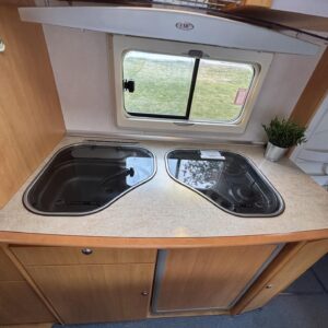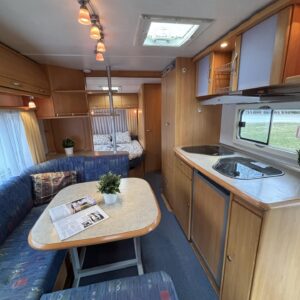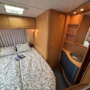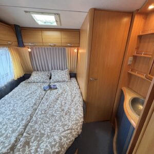 Alde, Jääkaappi, Kasetti WC, Kasettiverhot, Kattoluukku, Kerrossänky, Lattiamatot asunto-osassa, Liesi, Lämminvesiboileri, Nestekiertolämmitys, Pakastelokero, Parivuode, Pesuallas, Suihku, Sähköpatruuna, Tukijalat, Lattialämmitys (nestekierto), Kesärenkaat