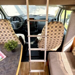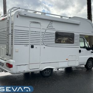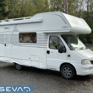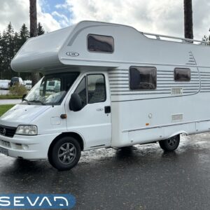 Todella avara alkovimalli asuintilan ilmastoinnilla. Edessä suuri parivuode kooltaan 140cm x 200cm. Keskellä avara pöytäryhmä sivusohvalla, jossa viihtyy väljästi kuusikin henkeä. Auton takaosasta löytyy kokille oma L-muotoinen keittiösaareke runsaalla laskutilalla. Pesu-/ wc-tila on mukavan kokoinen ja myös auton takaosassa. Säilytystilaa kaapistojen muodossa on sisätiloissa reilusti. Hyvinvarusteltu kokonaisuus luotettavalla Fiatin isolla koneella. Takaa löytyy myös ilmajousitus mukavaan ajoon.