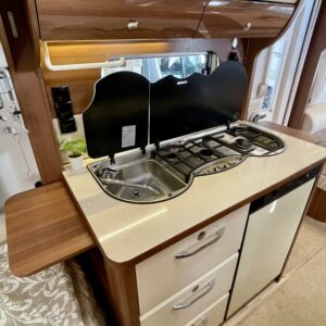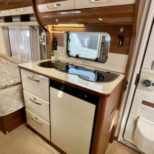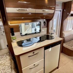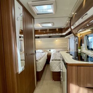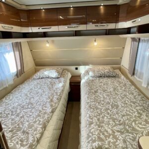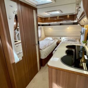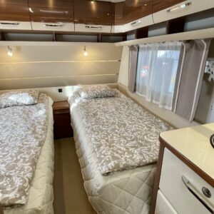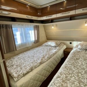 Alde, Erillisvuoteet, Erikoisvanteet, Jääkaappi, Kasetti WC, Kasettiverhot, Kattoluukku, Liesi, Lämminvesiboileri, Nestekiertolämmitys, Pakastelokero, Pesuallas, Sähköpatruuna, Tukijalat, Lattialämmitys (nestekierto), pullonvaihtaja, kaasun ulosotto, sähkön ulosotto, televisioteline, kwh-mittari, Lattiamatot asunto-osassa, Kotelomarkiisi