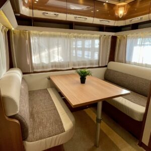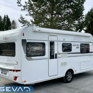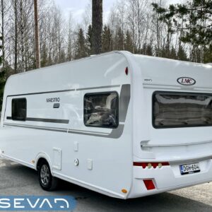Tyylikäs ja moderni LMC matkailuvaunu erillisvuoderatkaisulla. Vaunun etuosaan on sijoitettu pitkittäiset erillisvuoteet. Vuoteiden alle jää hyvin säilytystiloja ja toisen vuoteen alle on mahdollisuus operoida myös ulkopuolisen luukun kautta. Makuuhuoneosio saadan ”rauhoitettua” omaksi tilakseen välioven avulla. Keskeltä löytyy keittiö, sekä WC/kylpyhuonetilat. Takaosaa hallitsee vastakkain istuttava pöytäryhmä mistä saadaan sijattua vuode kahdelle henkilölle. Pöytäryhmän yläpuolella on iso kattoluukku mikä antaa mukavasti luonnonvaloa sisätiloihin. Vaunussa on lämmitysjärjestelmänä tehokas ja tasaisen lämmön tuottava Alden nestekeskuslämmitys. Tässä yksilössä on myös lattianlämmitys nestekiertoisena. Aldelle tyypilliseen tapaan lämmittimestä löytyy tietysti myös vastukset, sekä lämminvesiboileri. Käyttömukavuutta tuo myös automaattinen kaasupullon vaihtaja. Eikä grillauspuuhissakaan tarvita erillistä kaasupullojumppaa kun löytyy kaasun ulosotto. Oikein asiallinen kompakti paketti hiljattain katsastettuna ja juuri tarkastettuna valmiina kohti uusia seikkailuja.