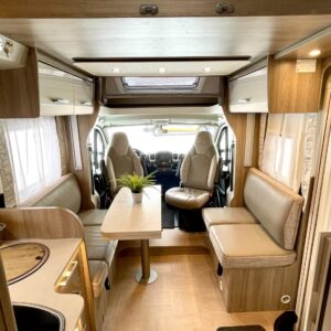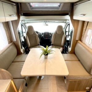 Tässä autossa viihtyy koko perhe. Harvassa pohjaratkaisussa ruokapöytään mahtuu kerrallaan jopa kuusi henkilöä. Pöytäryhmä on näppärästi puolitettavissa tilan säästämiseksi ja kulun helpottamiseksi eikä mauste- ja talouspaperitelinettä tarvitse poistaa edes yöksi, kiitos napista alas laskeutuvan parivuoteen. Ei sohvatyynypalapeliä ja jumittavia pöydän jalkoja, vain napin painallus ja höyhensaaret kutsuvat!