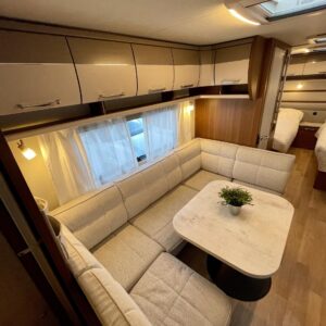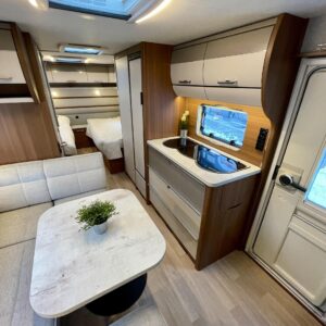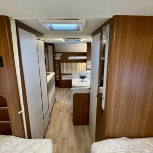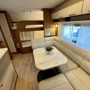 Vaunun takaosassa on kerrossänky kahdelle. Edessä erillissängyt, jotka on mahdollista yhdistää lisäpatjoilla erittäin tilavaksi parisängyksi. Keskellä vaunua sijaitseva valoisa U-ryhmä tarjoaa mukavat puitteet ruokailuun ja yhdessäoloon.