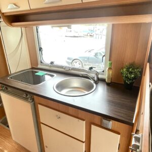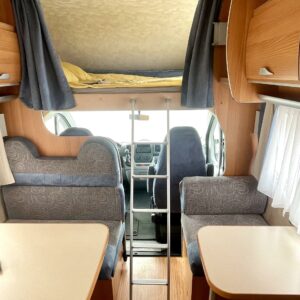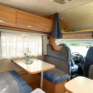 Auton etuosassa on kaksi pöytäryhmää, keskellä keittiö ja tilava WC/suihkutila ja perällä kerrossänky. Autossa on myös kattotuuletin kuumia aikoja varten, mikä toimii invertterillä.