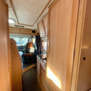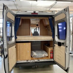 Tässä helpotusta retkiautokuumeeseen, Sloop 1. Vaalealla puulla sisustettu McLouis on valmiina tien päälle. Sisältä löytyy perus retkiksen sisusta, eikä mitään olennaista puutu. Katolla olevat aurinkopaneelit pitävät myös huolta että puskassa virtaa piisaa. Autosta löytyy sisäsuihku.