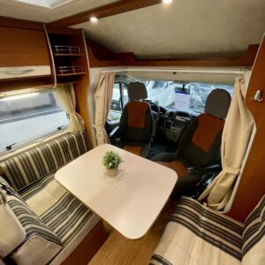 Oleskelutila on avara ja kutsuva. Suuret pinnat ja toimiva pohjaratkaisu tekevät sisätilasta valoisan ja viihtyisän, olitpa sitten iltapalalla sateen ropistessa kattoon tai suunnittelemassa seuraavaa etappia. Kunnollinen L-keittiö tarjoaa reilusti laskutilaa ja säilytystä, ja jenkkikokoinen jääkaappi pitää eväät kylmänä pidemmällekin matkalle.
