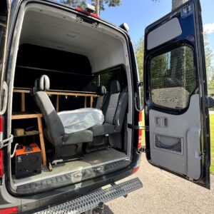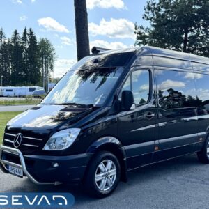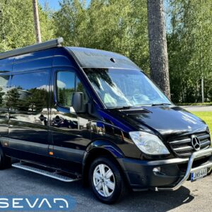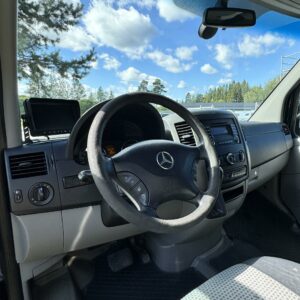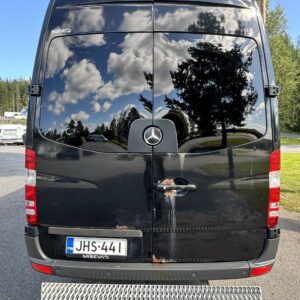 Maailmaa nähnyt ja retkiä tällä tehty useampikin. Pelleissä elämä tien päällä jo hieman näkyy, mutta Mersuthan on tehty ahmimaan kilometrejä enemmänkin. Sisätiloista löytyy kompressorijääkaappi ruoan säilytykseen. Takaosa muuntuu sängyksi. Mukaan kyytiin saa muutaman extra penkin. Tässä hyvä aihio jatkojalustukseen retkikseksi tai sellaisenaan ajoon. Edessä on varmasti vielä paljon mukavia kilometrejä.