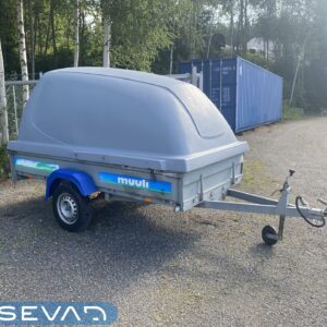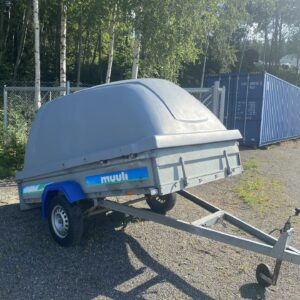 Muulin kuomullinen kippaava kärri. Tämähän on akselirakenteeltaan lehtijousilla ja iskareilla varustettu. Lavamitat 140×275 ja laitakorkeus 30cm. Kahdella yrityksellä ollut hyvinkin kevyessä käytössä. Yrityksille alv. vähennyskelpoinen hinnaltaan. Oikea etuparkki ei pala, muuten ihan toimiva kampe. Lavavanerikin kohtuu hyvässä kunnossa. 7-napaisella pistokkeella.