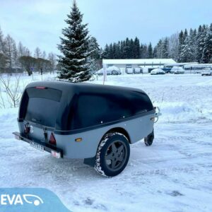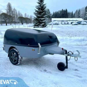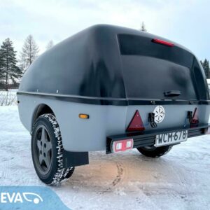 Nyt on speciaali tuote tarjolla. Näitä ei joka oksalla kasva … nopein noutaa! Tehdasvalmisteinen Made in Finland tuote. Kuomullinen todella hienon kunnon omaava kevytperävaunu millä omapainoa vain 140kg. Kokonaismassa 450kg, joten kantavuutta jopa 310kg. Sisältä löytyy akkuteline ja hieno ”virranjakokeskus” millä saadaan ohjattua sisäpuolen valaisevaa LED-valaistusta, sekä illan hämärässä mahtavan efektin luomaa alustassa olevaa LED-valaistusta. Vaunun etureunaan on tehty syvennys millä saadaan pidemmälle tavaralle (esim. sukset) kuljetusmahdollisuus. Tule, näe, koe, ihastu … ja vie mukanasi tämä sympaattinen pieni perävaunu ennen kun muut ehtivät!