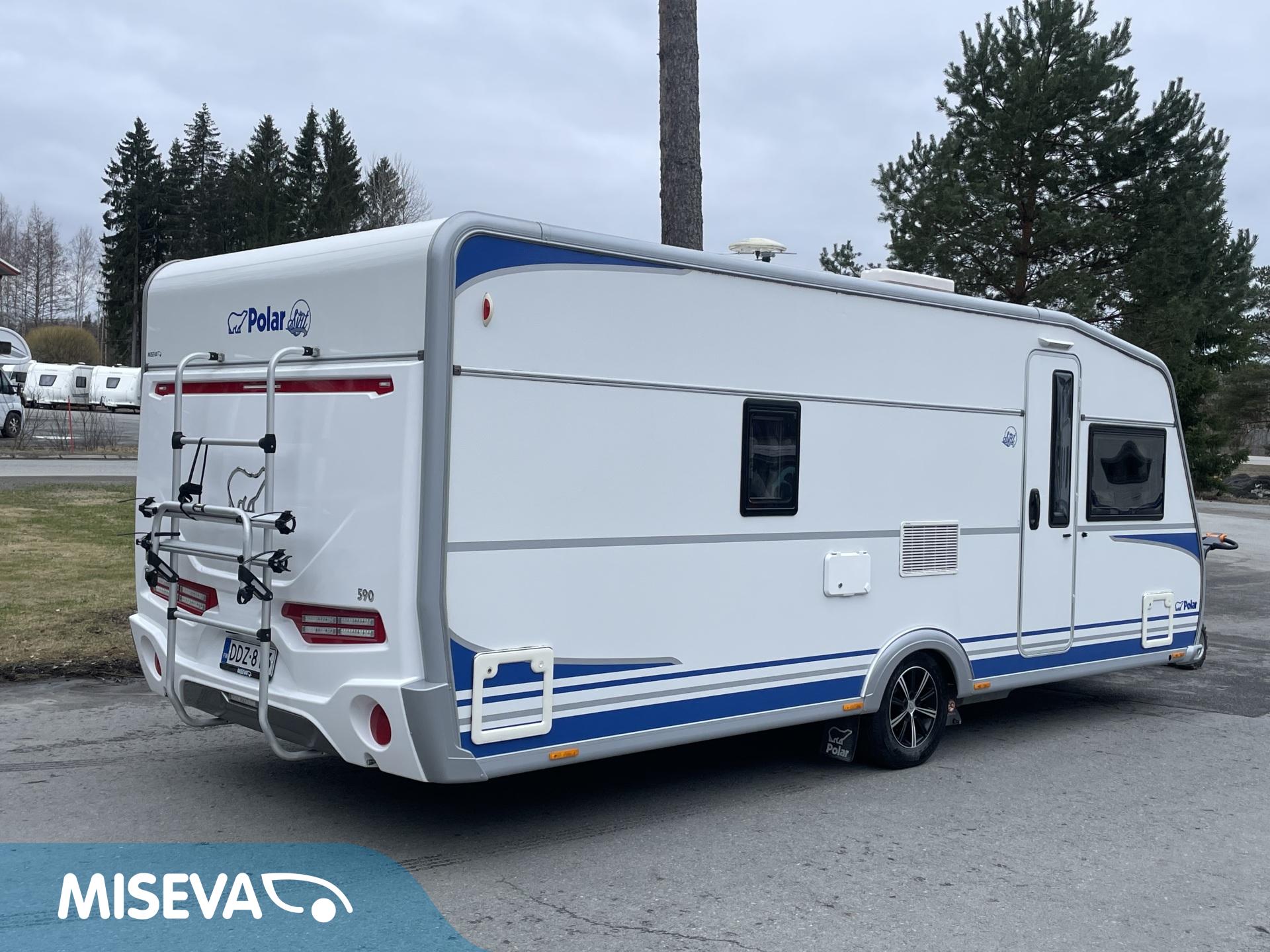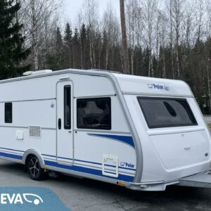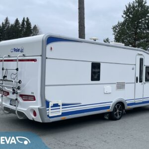 Todella ”mintin” kunnon omaava Polar, talvivaunujen klassikko! Lähes koko käyttöikä (4/15->) samalla omistajalla. Vaunun takaosa on kokonaisuudessaan WC/kylpyhuonetilaa. Sieltä löytyy lisäksi erillinen suihkutila. Kylppärin välittömässä läheisyydessä on makuuhuone missä on pitkittäinen parivuode, sekä pieni työtaso. Vuoteen alle jää runsaat säilytystilat ja sinne on käynti myös ulkopuolisen luukun kautta. Vaunun keskellä on L-keittiö, mistä löytyy iso jääkaappi, mikro, sekä kaasu-uuni. Keittiötasoilla on paljon laskutilaa. Edessä on U-sohvaryhmä mistä saadaan tarvittaessa sijattua vuode kahdelle henkilölle. Edestä löytyy vielä koko vaunun levyinen ”suksiluukku” pitkän tavaran säilytystilaksi. Mainittakoon vielä aivan käyntioven vieressä oleva vaatteiden ja kenkien säilytystila. Polarin tyyliin vaunussa on tietysti Alden lattiakiertoinen nestekeskuslämmitys. Tähän on myös yhdistetty niin sanottu ”sähköpatruuna” . Vanun koukkuun kytkeminen, sekä siirtely on vaivatonta vaununsiirtolaitteen (Mover) avulla. Hieno kokonaisuus, varmasti tutustumisen arvoinen tapaus.