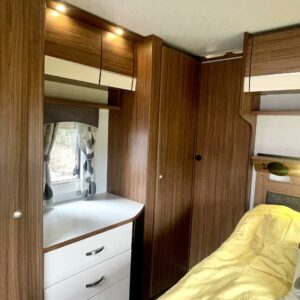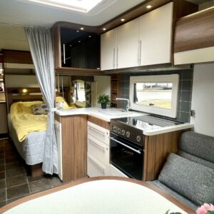 Alde, Erikoisvanteet, Jääkaappi, Kaasu-uuni, Kasetti WC, Kasettiverhot, Kattoluukku, Liesi, Lämminvesiboileri, Mikroaaltouuni, Nestekiertolämmitys, Pakastelokero, Parivuode, Pesuallas, Radio, Suihku, Sähköpatruuna, Tukijalat, Lattialämmitys (nestekierto), kaasun ulosotto, sähkön ulosotto