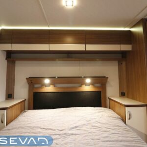 Alde, Erikoisvanteet, Eristetty harmaavesisäiliö, Jääkaappi, Kasetti WC, Kasettiverhot, Lattialämmitys, Liesi, Pesuallas, Parivuode, Pakastelokero, Nestekiertolämmitys, Nahkasisusta, Lämminvesiboileri, Radio, Suihku, Sähköpatruuna, TV-antenni tai lautasantenni, Tukijalat, Kattoluukku