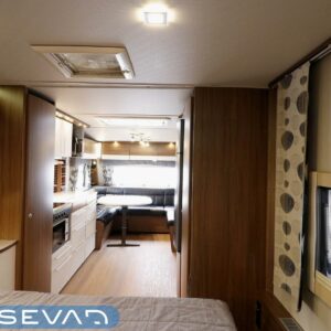 Tyylikäs ja siistikuntoinen ruotsalainen Polar vaativaan ympärivuotiseen käyttöön. Tässä vaunussa on koko vaunun levyinen kylpyhuone erillisellä suihkutilalla, mikä soveltuu mainiosti myös vaatetilaksi!