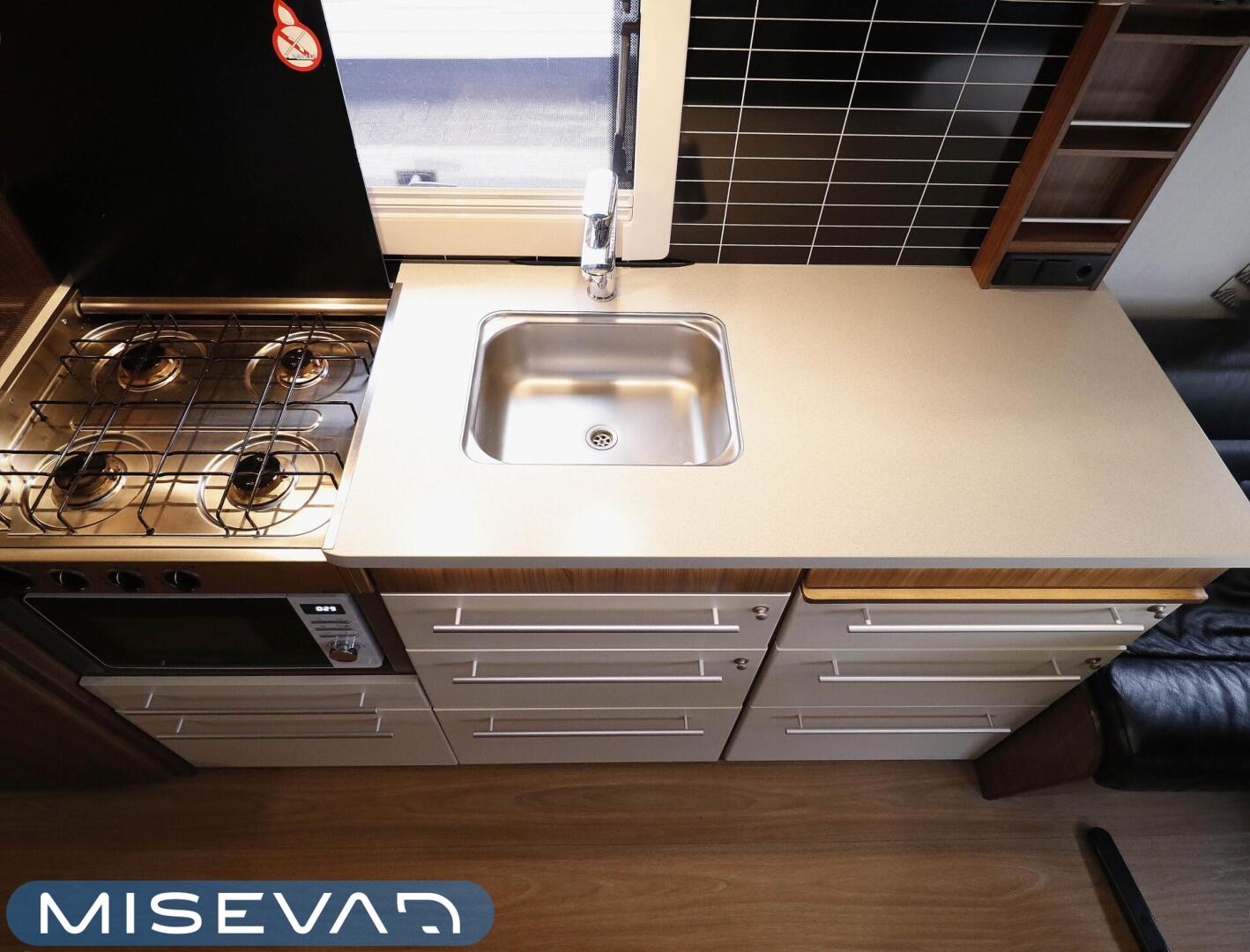 Alde, Erikoisvanteet, Eristetty harmaavesisäiliö, Jääkaappi, Kasetti WC, Kasettiverhot, Lattialämmitys, Liesi, Pesuallas, Parivuode, Pakastelokero, Nestekiertolämmitys, Nahkasisusta, Lämminvesiboileri, Radio, Suihku, Sähköpatruuna, TV-antenni tai lautasantenni, Tukijalat, Kattoluukku
