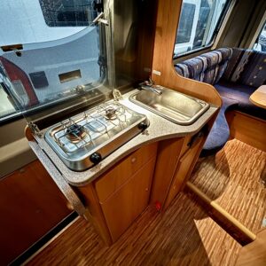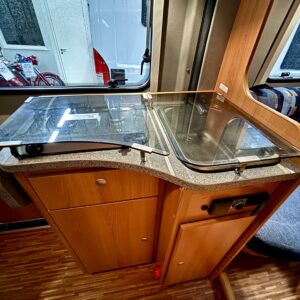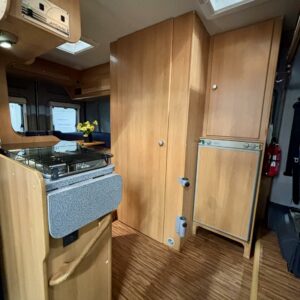 Jääkaappi, Kasetti WC, Kattoluukku, Liesi, Parivuode, Sähkökäyttöiset ikkunat, Trumatic, Vakionopeudensäädin, Ilmastointi ajotilassa, Sähkörappu, Vetokoukku, Lohkolämmitin, Radio, Lämminvesiboileri, Pakastelokero, Pesuallas, Kesärenkaat