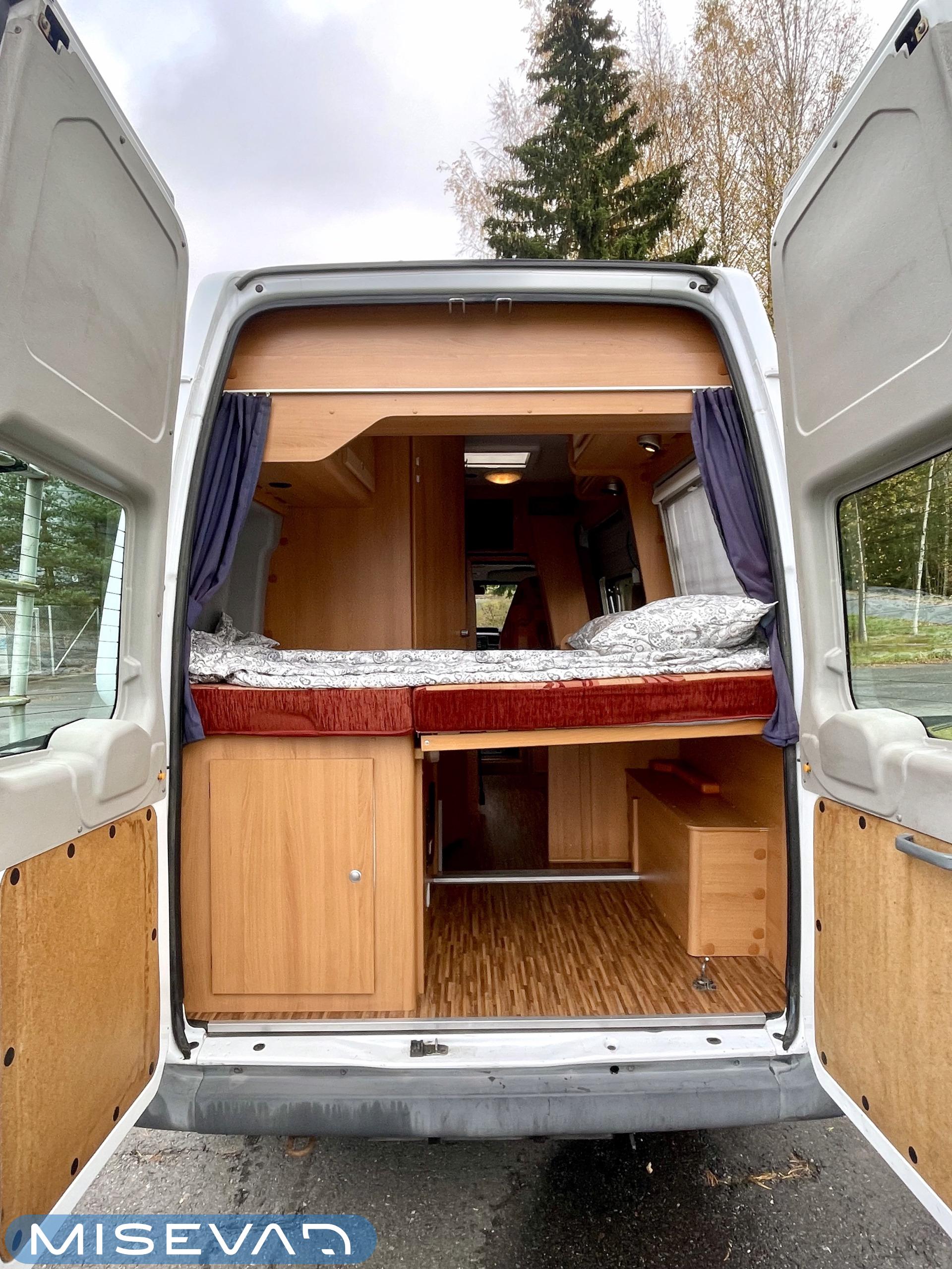Tässä olisi luotettavalla Fordin tekniikalla oleva 5,8 metrinen retkeilyauto uusiin seikkailuihin. Tai miksei ihan myös arkikäyttöön, pituutensa puolesta tämä mahtuu perusparkkiin heittämällä. Autossa on myös Fortuna vakiovarusteena ja 131 heppainen moottori vie reippaasti eteenpäin.Transitin perustekniikka takaa, että mukavia kilometrejä on varmasti edessäpäin. Laitteet ovat tarkastettu, koeponnistettu ja niin edelleen. Niinkuin me Misevalla täällä kaikille kulkineille tehdään. Nappaa oma onnesi tästä ja lähde Fortunan kanssa seikkailuun!