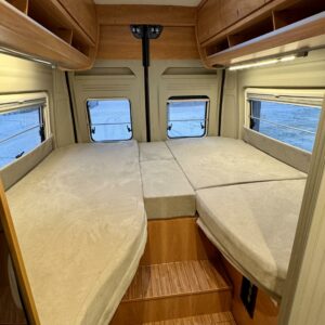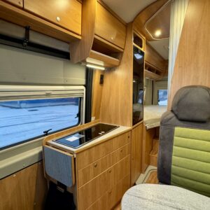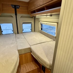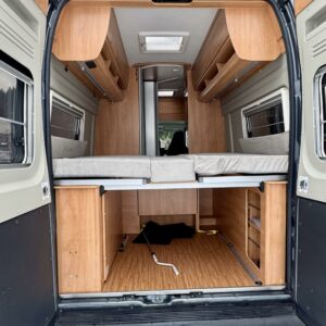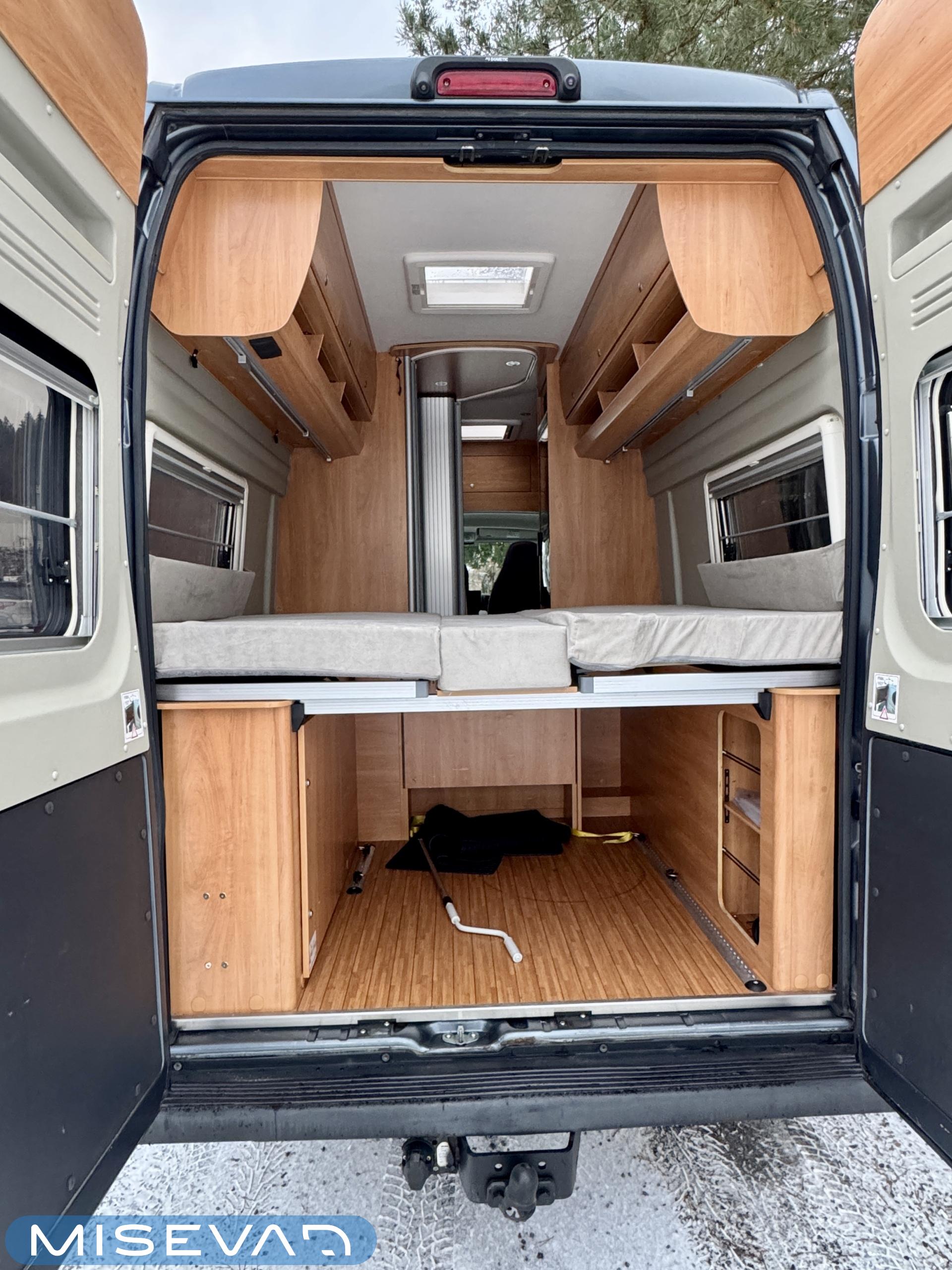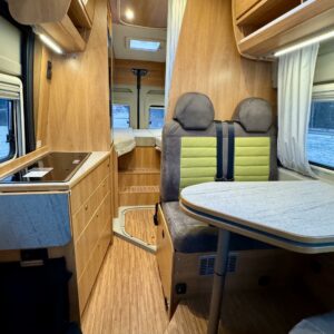Tästä retkiautosta riittää tilaa myös pidemmille matkaajille. Kyseessä on hyvin varusteltu ja käytännöllinen malli, johon on lisätty markiisi ja aurinkopaneeli täydellinen valinta niin lyhyille retkille kuin pidemmille reissuille.