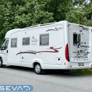 Rapidoissa on jotain vähän erilaista ja omalaatuista. Se näkyy myös tässä autossa. Mustat sisustustyynyt punaisella sohvalla kutsuu nauttimaan iltapäiväkahvit Rapidon yleellisessä tunnelmassa. Ehdottomasti tämän auton valttikortti on taka-wc. Iso sellainen! Wc ei vie asuinosasta tilaa pois, vaan luo avaran kokonaisuuden oleskeluun. Parisänky takana on mukavan leveä ja vieressä suorastaan söötti pieni pöytä, pienine vetolaatikostoineen. Makuuhuoneesta saa oman huoneen puisilla liukuovilla. Tilasta löytyy myös vaatekaappi. Kokille on tarjolla L-keittiö ja reilusti kaappitilaa. Jääkaappi on mallia iso ja erillinen pakastinlokerokin löytyy. Lisänä on vielä kaasu-uuni, pullan paistoon, mihinkäs muuhunkaan. Kapteenintuolit kääntyvät ohjaamosta kajuuttaan ja pöydän ympärille mahtuu viisikin ruokailijaa. Kaikenkaikkiaan Rapido on tyylikäs ja sympaattinen kokonaisuus. Hieman valtavirrasta poikkeaville tämä on juuri se oikea matkailuauto!