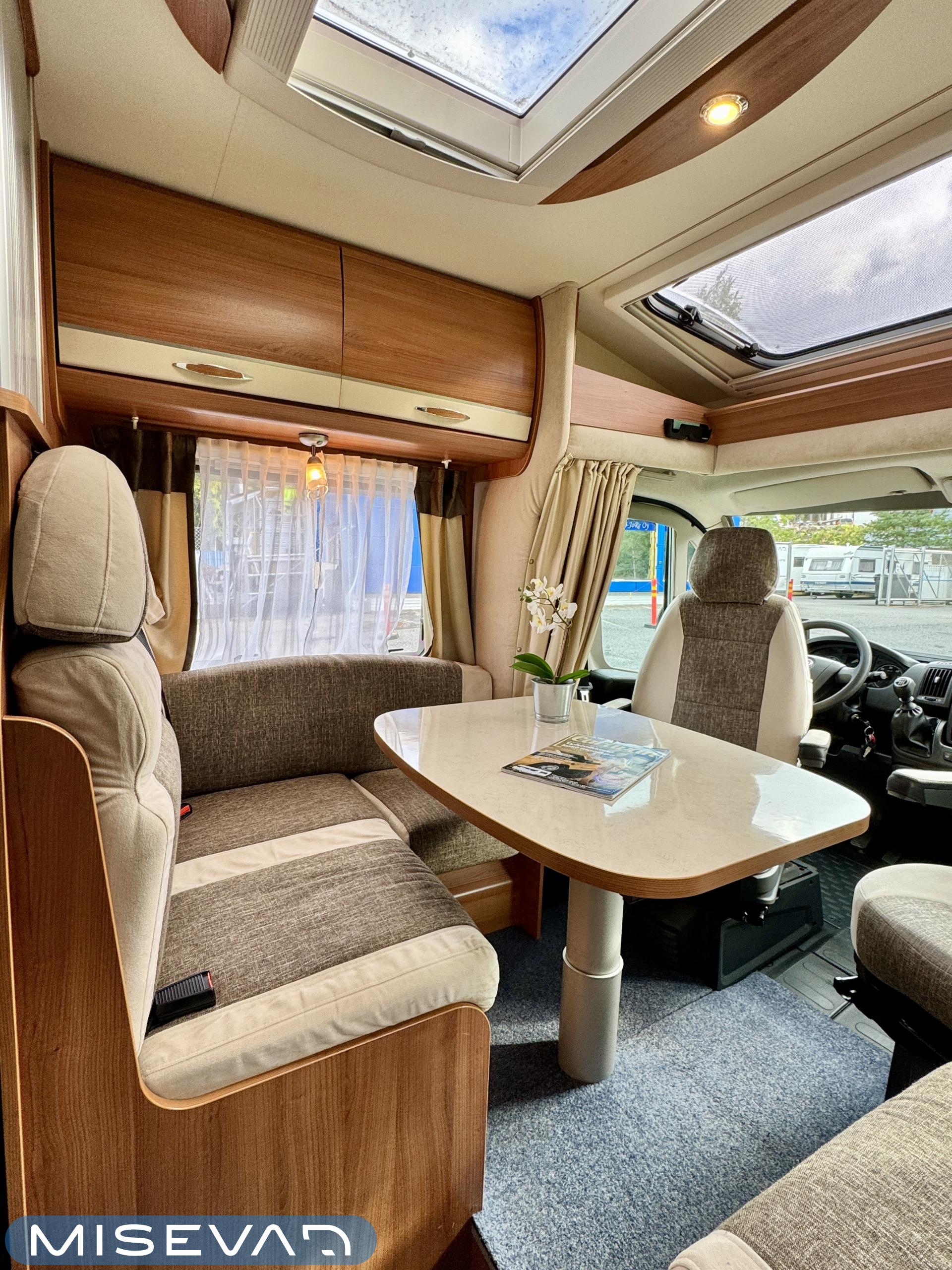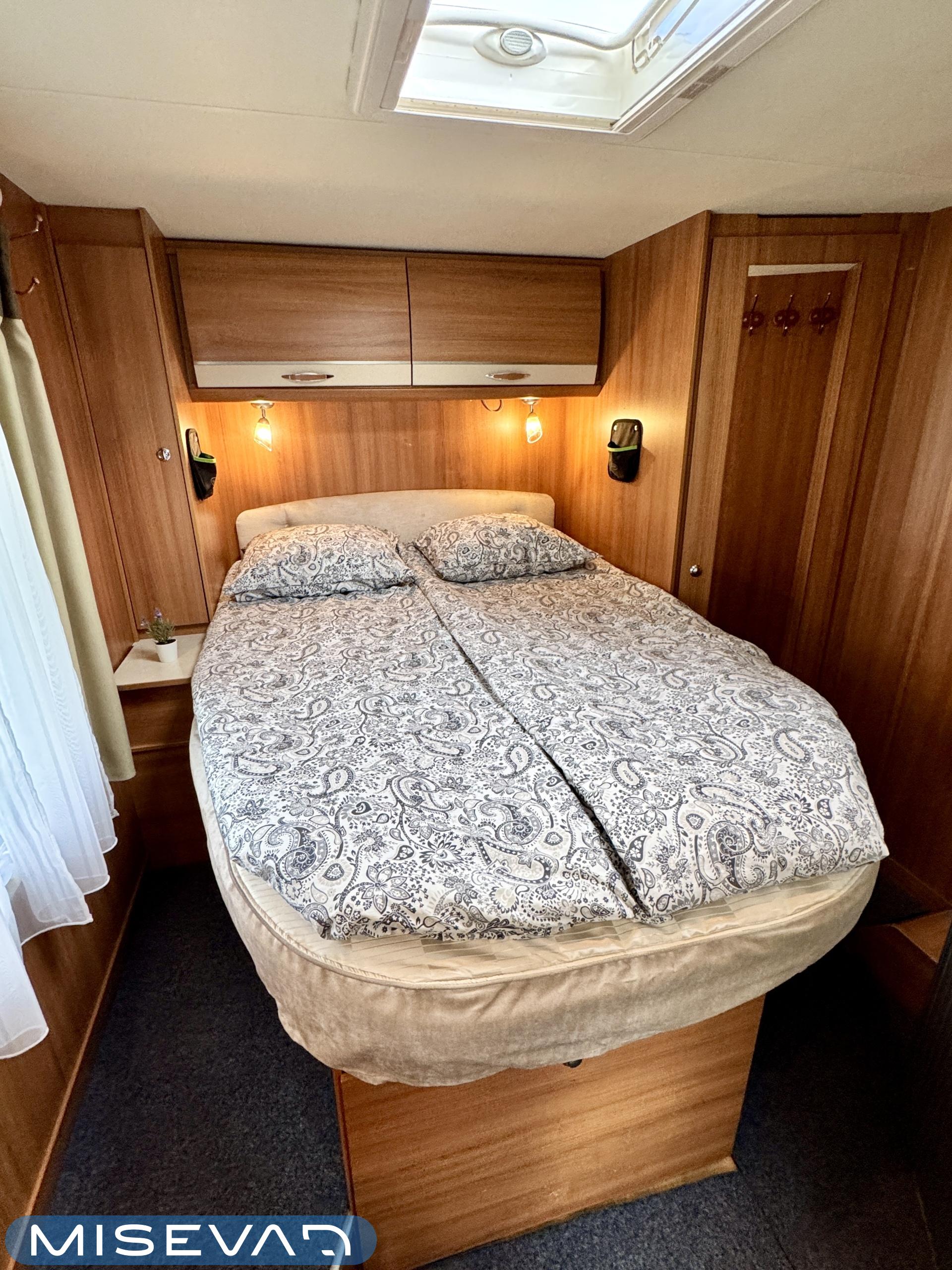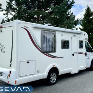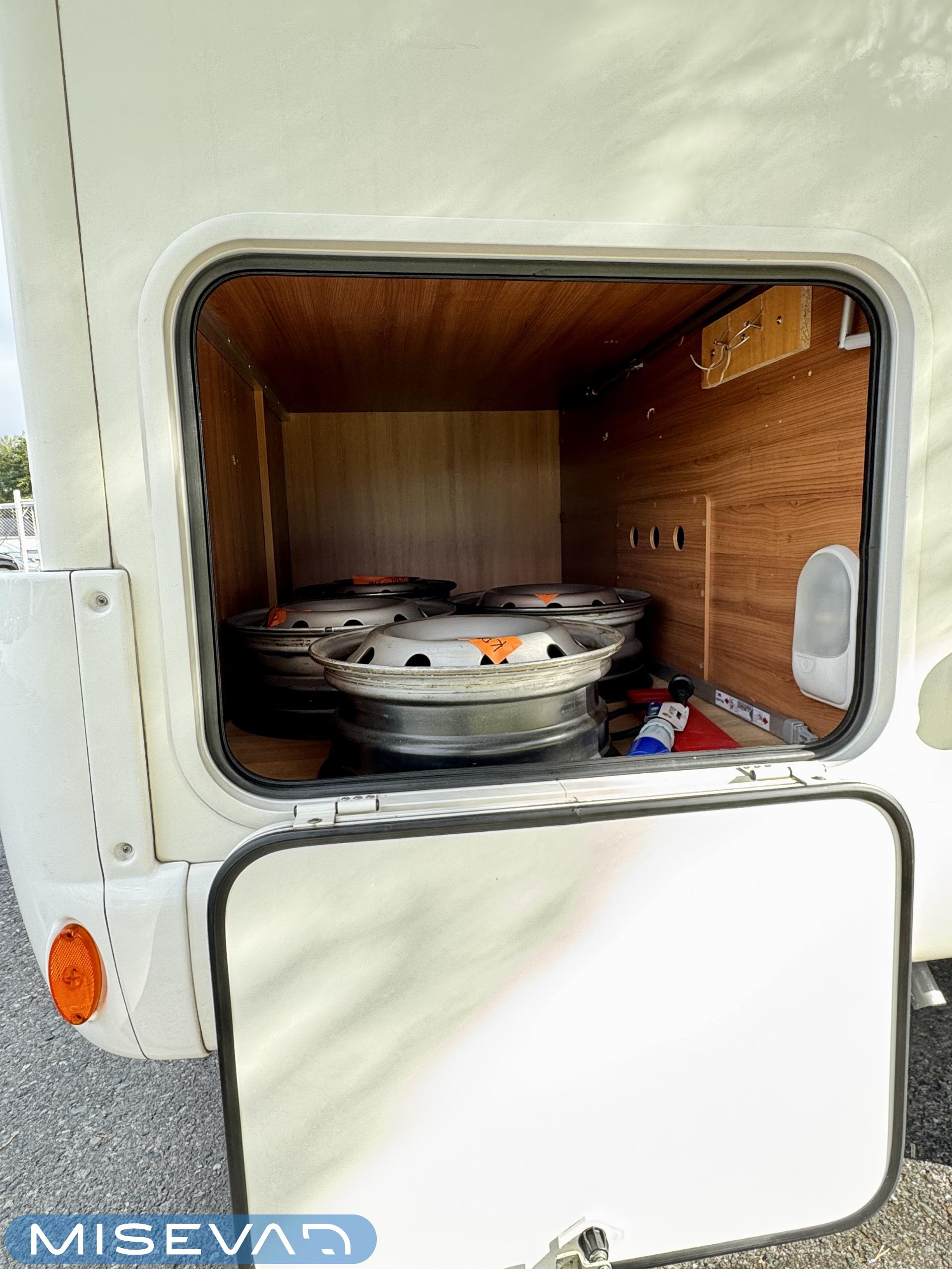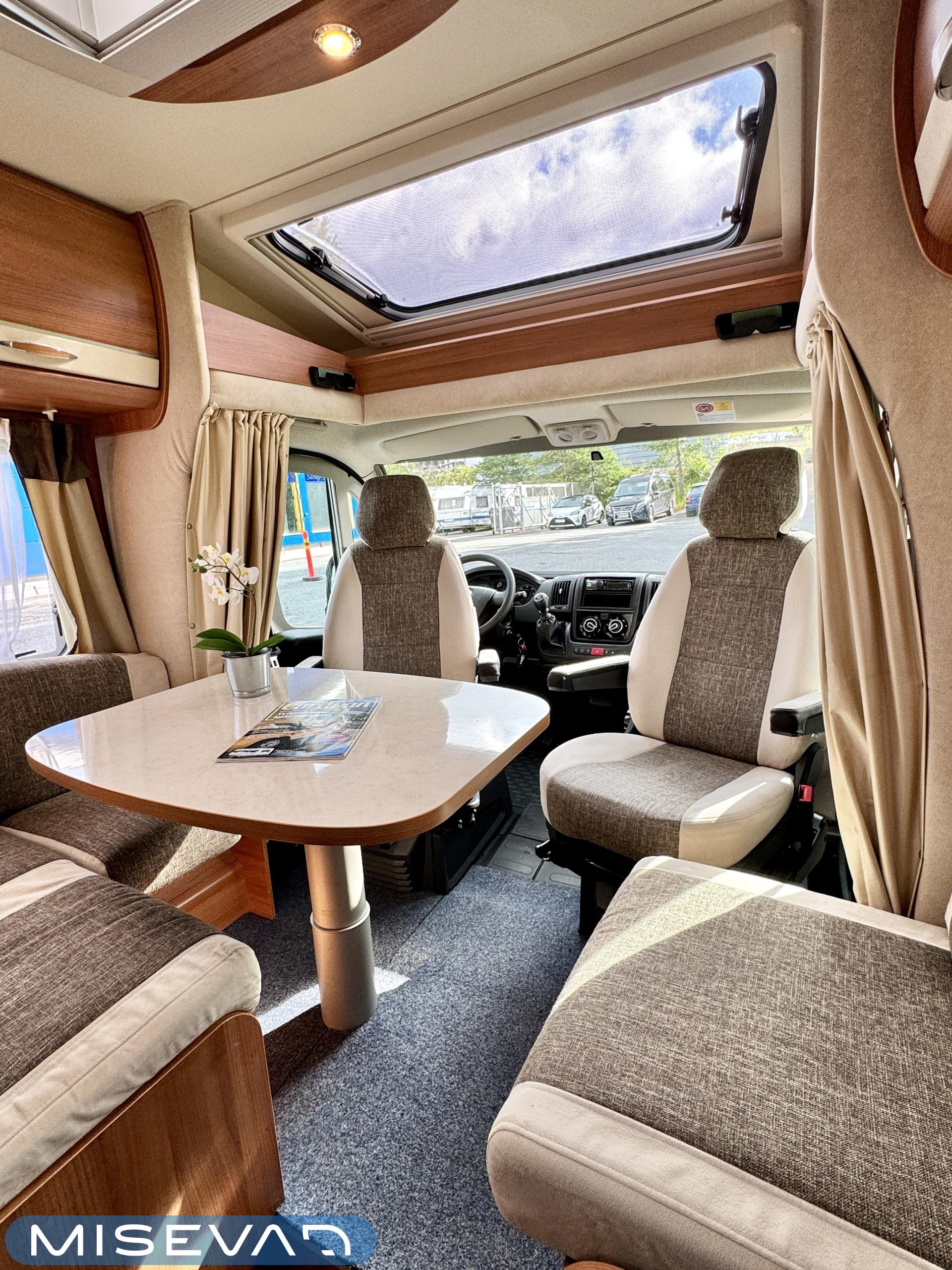 Rapidot erottuvat yleensä edukseen ja monesti sisätilat on mietitty käytäntöä silmällä pitäen. Tämän auton ehdoton valtti on saarekesänky. Ei tarvitse kömpiä kenenkään yli tai ali, sänkyyn mennessä. Toinen erikoisuus on takana sijaitseva suihku. Tilan voi halutessaan käyttää myös vaatekaappina. Wc sijaitsee auton keskiosassa, omana huoneenaan. Keittiöstä löytyy tarvittava kaappitila padoille ja kattiloille. Vastapäätä keittiötä on iso jääkaappi erillisellä pakastimella. Ruokaa mahtuu kyytiin matkustajien lisäksi kivasti. Ja iso, erillinen pakastin on mukava kaveri syksyn sienimetsille. Etupenkit kääntyvät ruokailupöydän ympärille ja tilaan mahtuu helposti neljästä viiteen istujaa. Ruokapöytä muuntuu tarvittaessa myös sängyksi. Panoraama ikkuna tuo etuosaan valoa ja se on aurinkoinen lisä kokonaisuutta ajatellen. Kuumina päivinä toimii myös hyvin tuuletusikkunana. Yleisilme on siisti ja selvästi autoa on pidetty hyvänä omistajiensa toimesta. Olisiko tässä auto juuri sinulle?