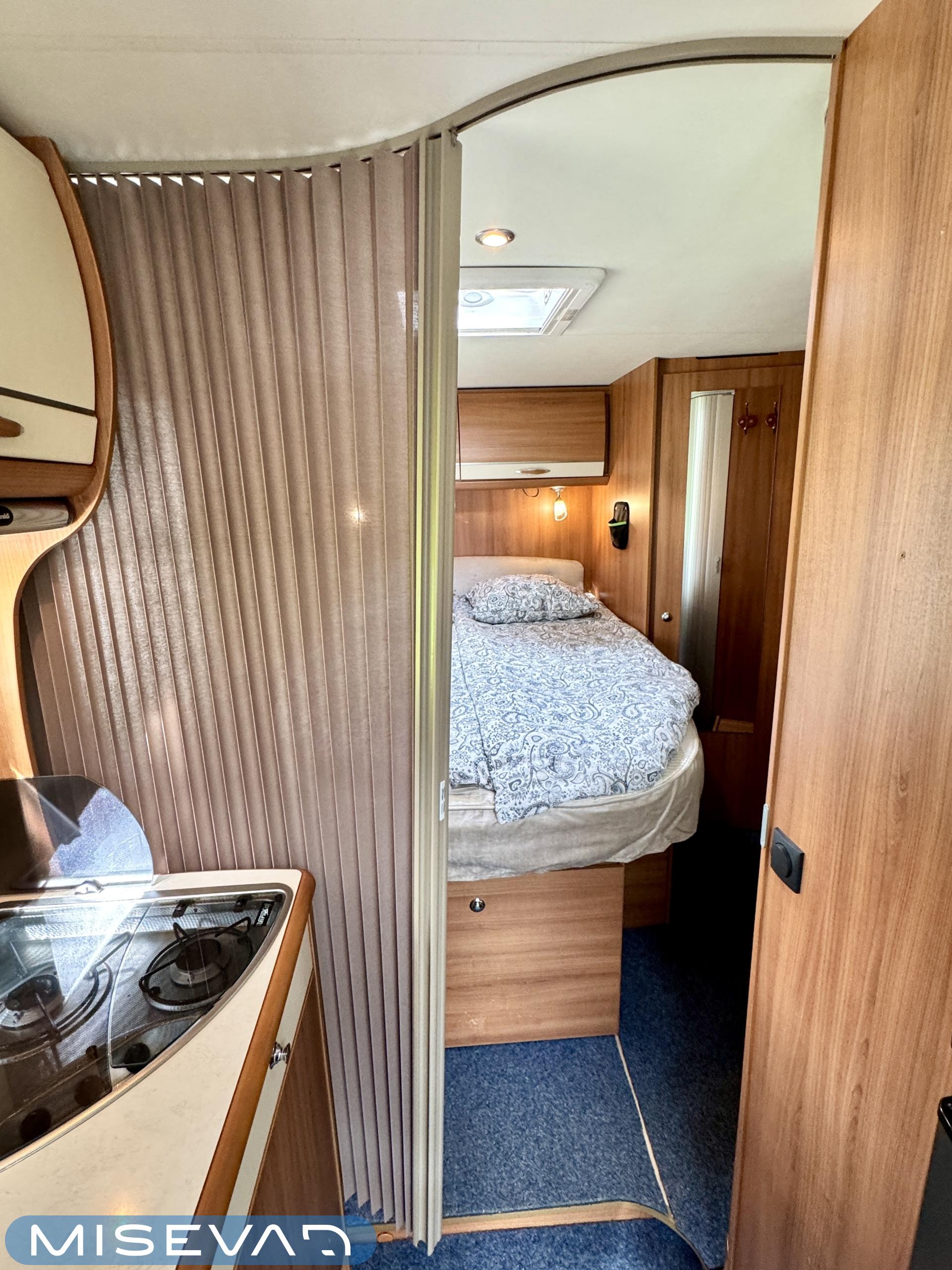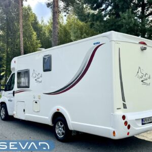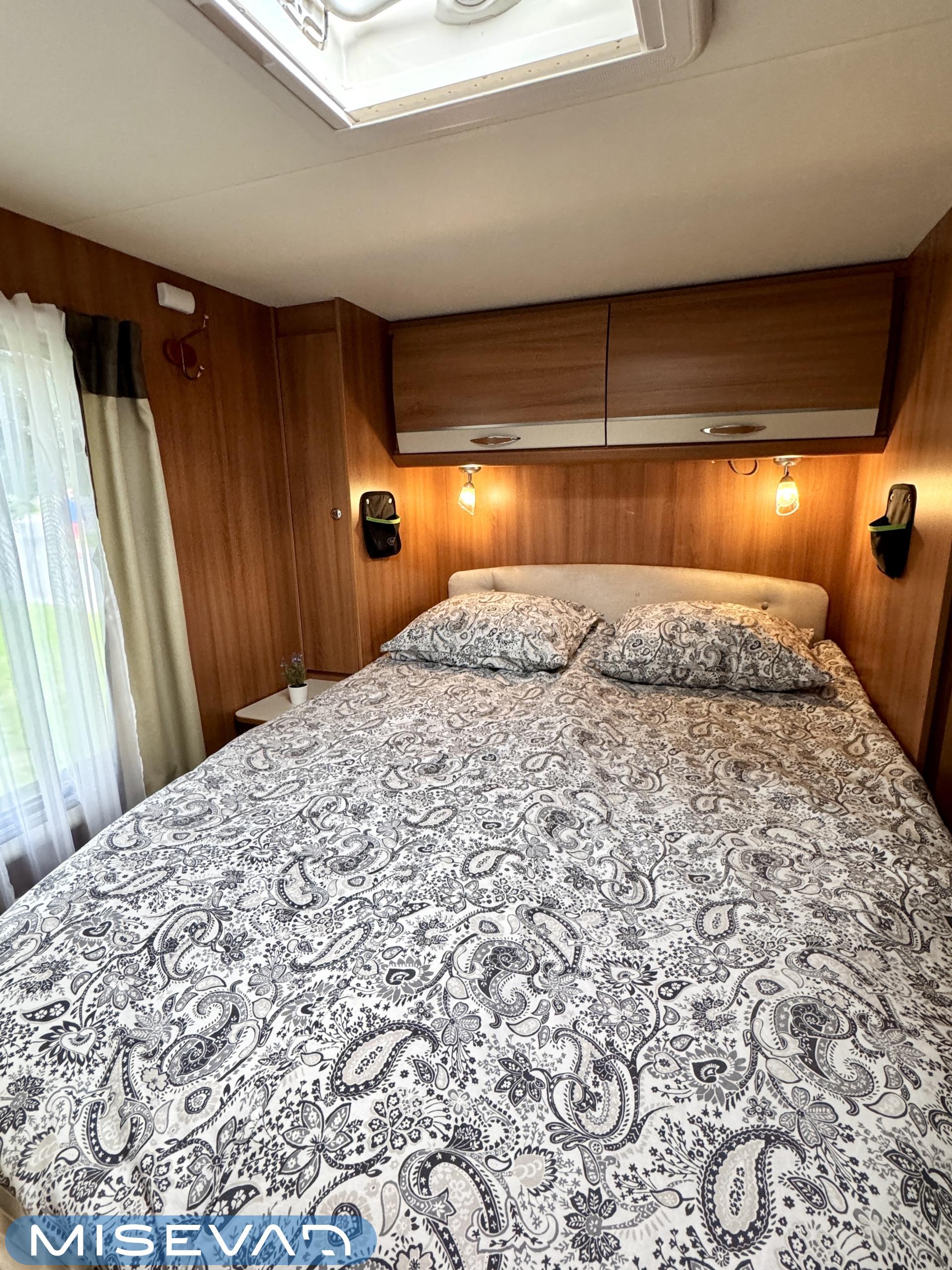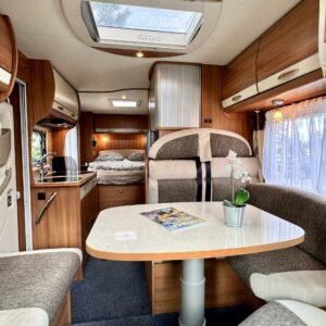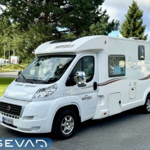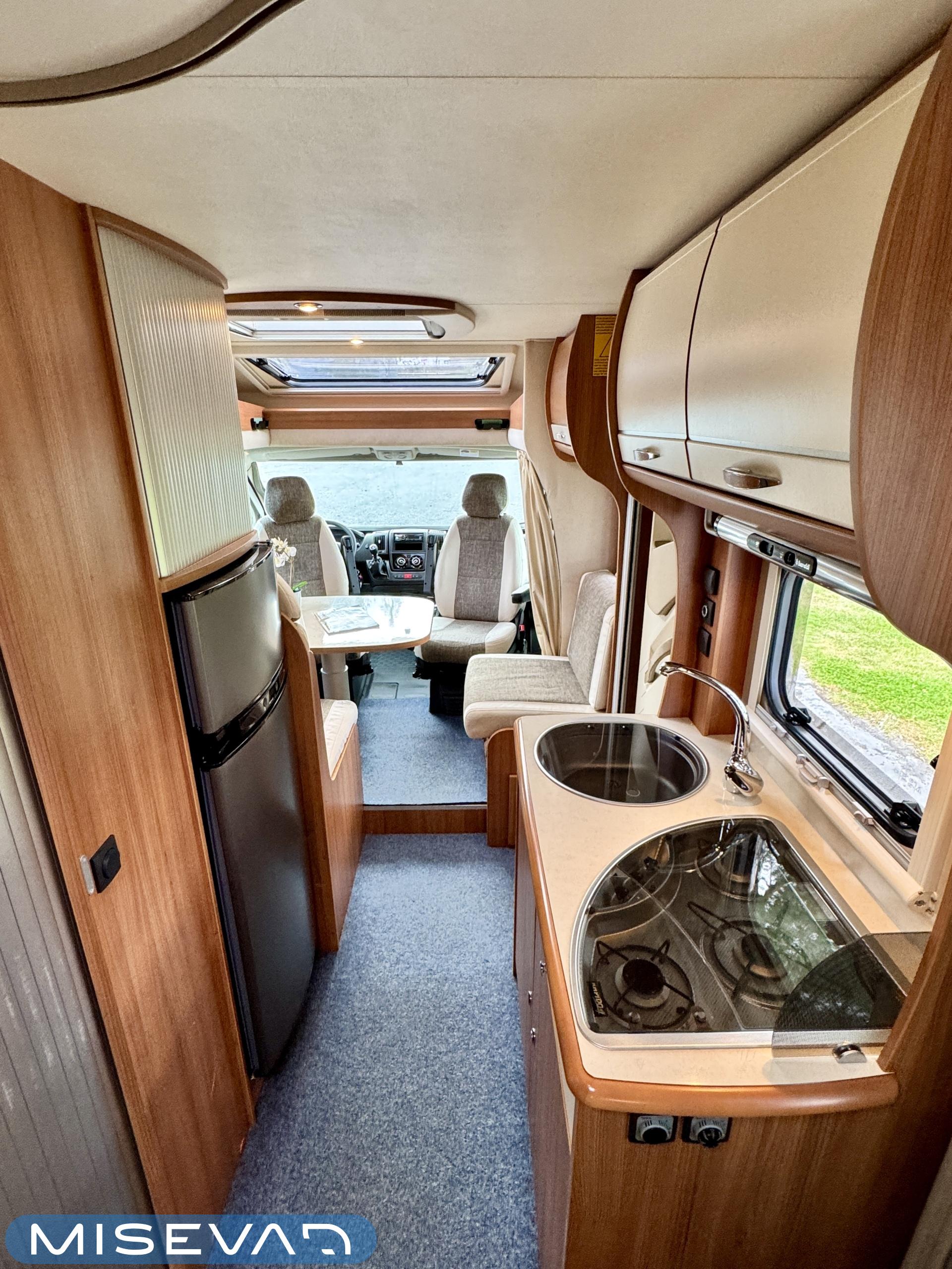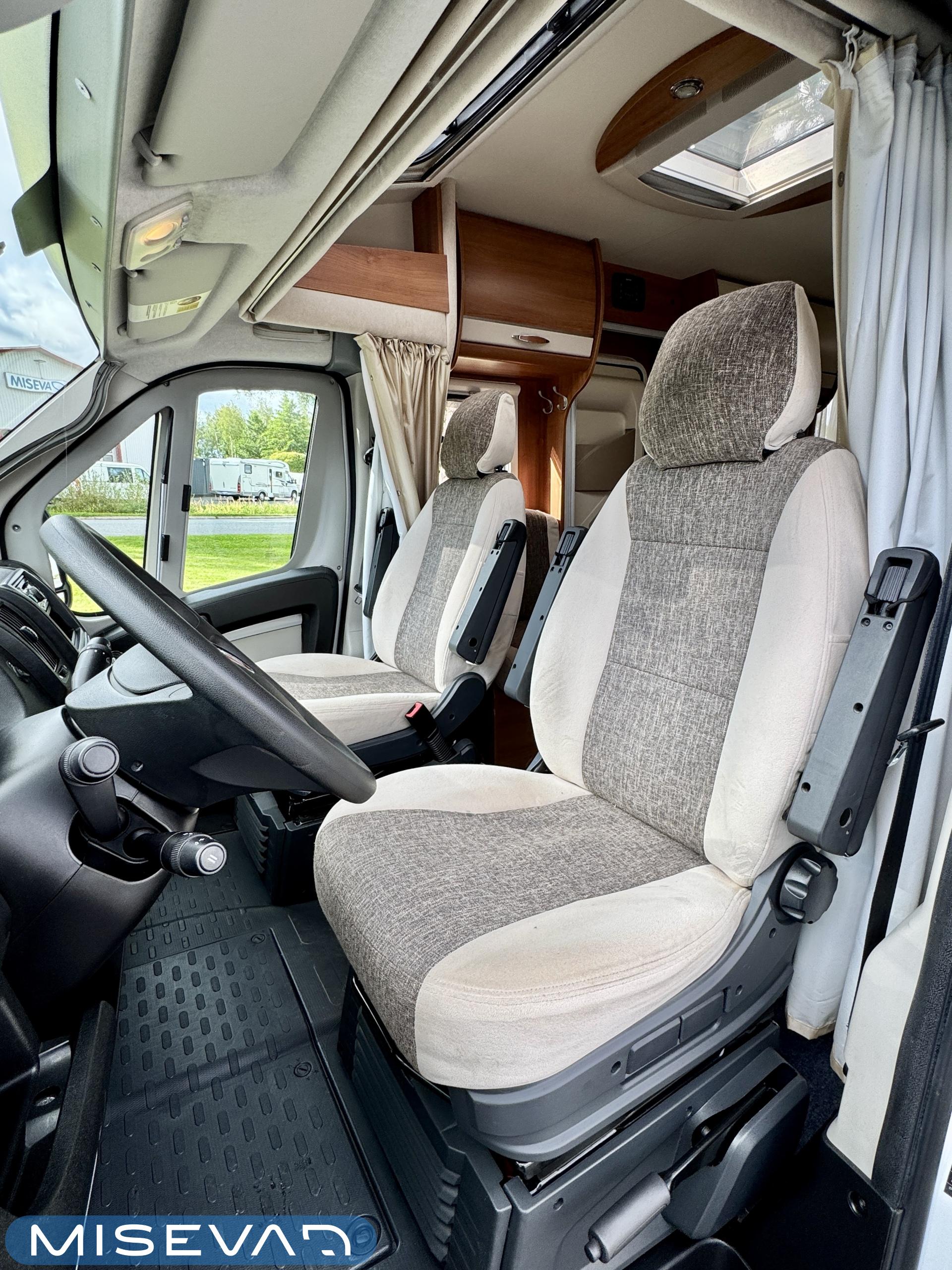 Rapidot erottuvat yleensä edukseen ja monesti sisätilat on mietitty käytäntöä silmällä pitäen. Tämän auton ehdoton valtti on saarekesänky. Ei tarvitse kömpiä kenenkään yli tai ali, sänkyyn mennessä. Toinen erikoisuus on takana sijaitseva suihku. Tilan voi halutessaan käyttää myös vaatekaappina. Wc sijaitsee auton keskiosassa, omana huoneenaan. Keittiöstä löytyy tarvittava kaappitila padoille ja kattiloille. Vastapäätä keittiötä on iso jääkaappi erillisellä pakastimella. Ruokaa mahtuu kyytiin matkustajien lisäksi kivasti. Ja iso, erillinen pakastin on mukava kaveri syksyn sienimetsille. Etupenkit kääntyvät ruokailupöydän ympärille ja tilaan mahtuu helposti neljästä viiteen istujaa. Ruokapöytä muuntuu tarvittaessa myös sängyksi. Panoraama ikkuna tuo etuosaan valoa ja se on aurinkoinen lisä kokonaisuutta ajatellen. Kuumina päivinä toimii myös hyvin tuuletusikkunana. Yleisilme on siisti ja selvästi autoa on pidetty hyvänä omistajiensa toimesta. Olisiko tässä auto juuri sinulle?
