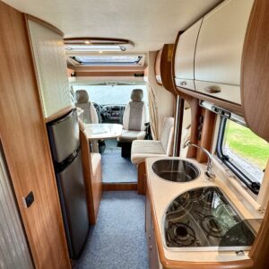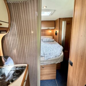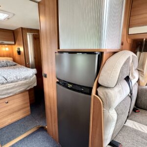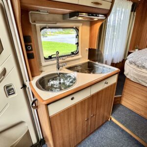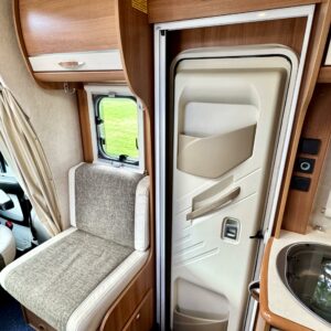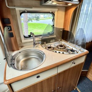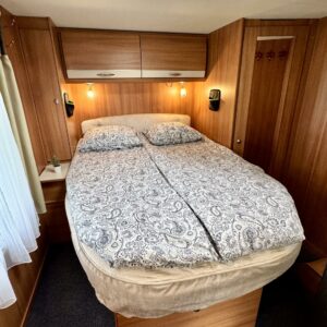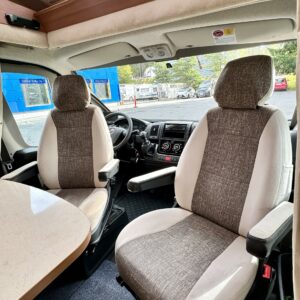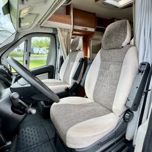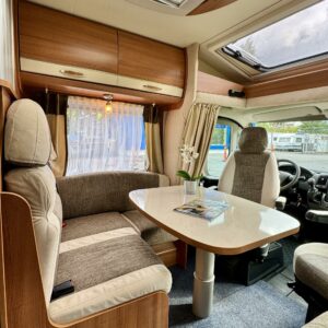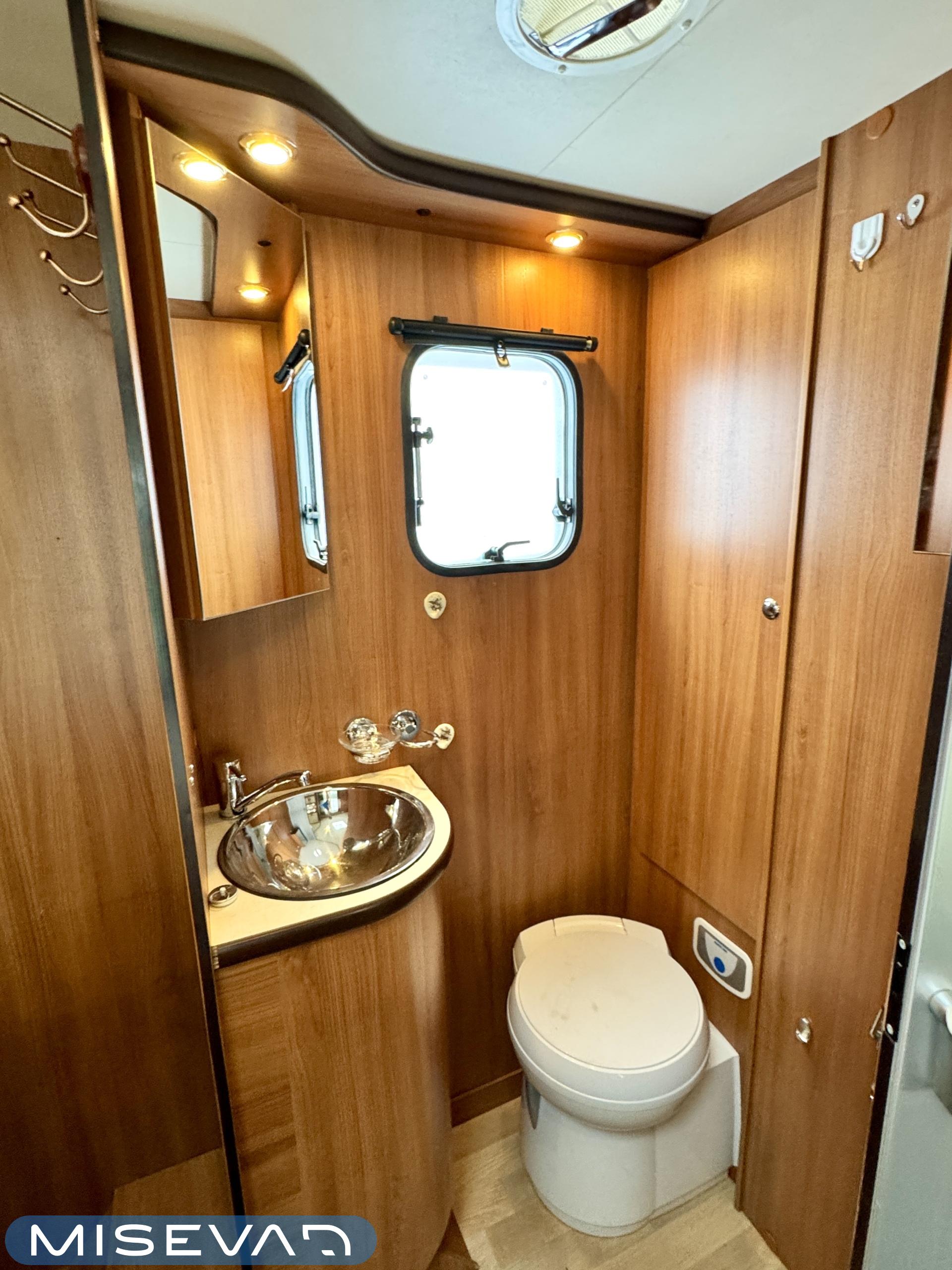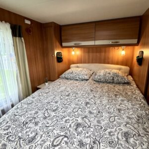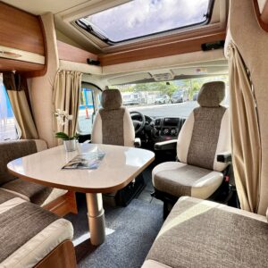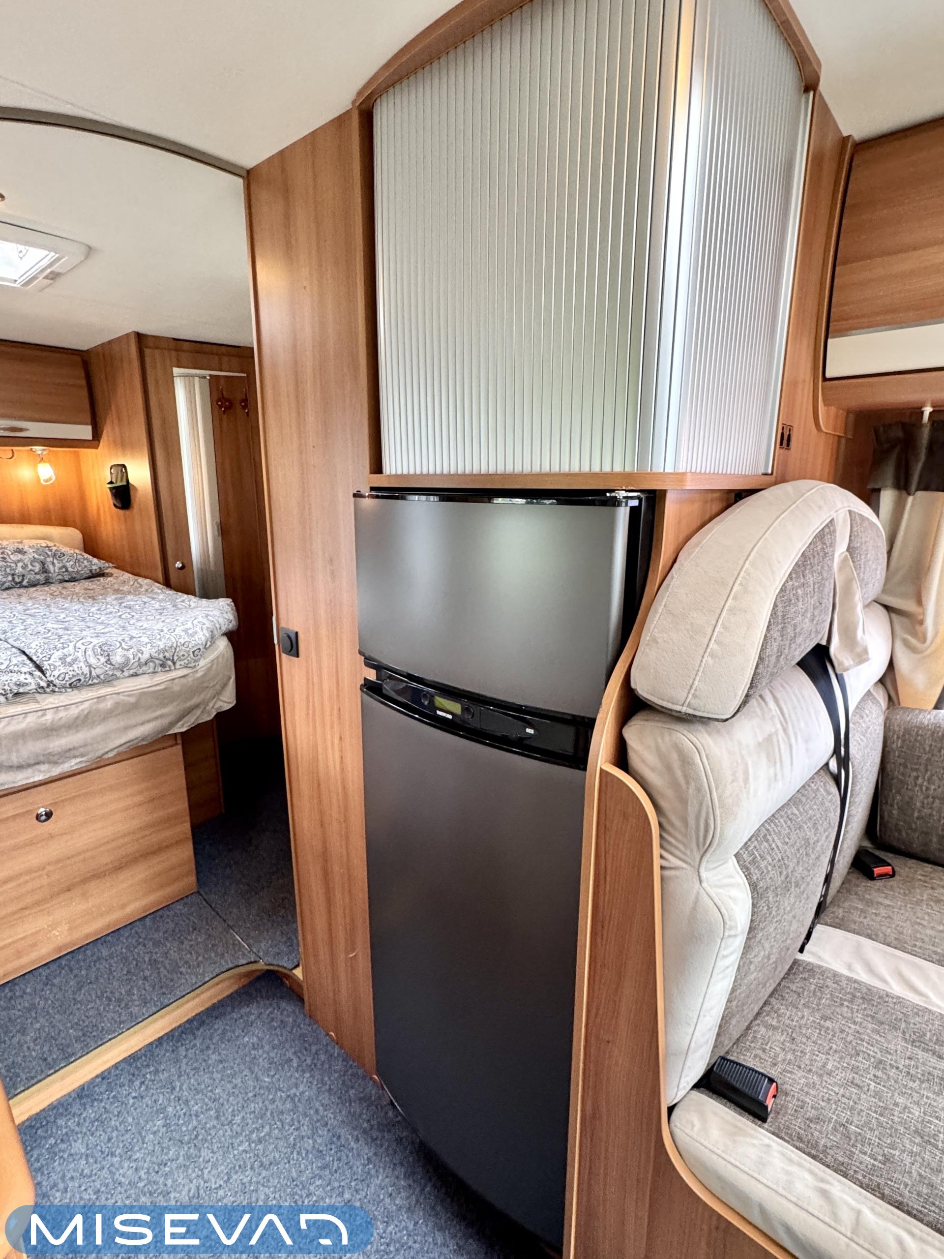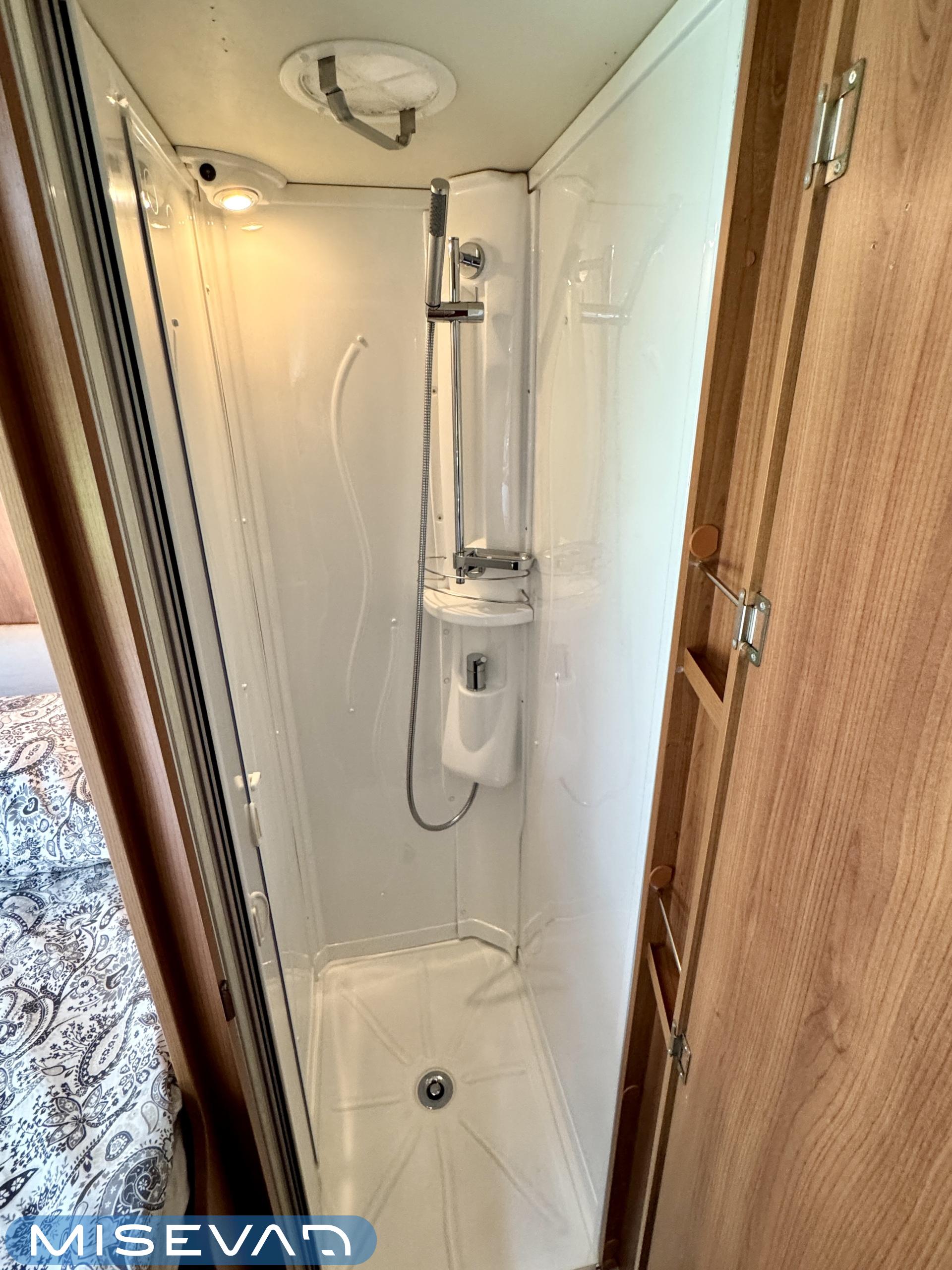 Rapidot erottuvat yleensä edukseen ja monesti sisätilat on mietitty käytäntöä silmällä pitäen. Tämän auton ehdoton valtti on saarekesänky. Ei tarvitse kömpiä kenenkään yli tai ali, sänkyyn mennessä. Toinen erikoisuus on takana sijaitseva suihku. Tilan voi halutessaan käyttää myös vaatekaappina. Wc sijaitsee auton keskiosassa, omana huoneenaan. Keittiöstä löytyy tarvittava kaappitila padoille ja kattiloille. Vastapäätä keittiötä on iso jääkaappi erillisellä pakastimella. Ruokaa mahtuu kyytiin matkustajien lisäksi kivasti. Ja iso, erillinen pakastin on mukava kaveri syksyn sienimetsille. Etupenkit kääntyvät ruokailupöydän ympärille ja tilaan mahtuu helposti neljästä viiteen istujaa. Ruokapöytä muuntuu tarvittaessa myös sängyksi. Panoraama ikkuna tuo etuosaan valoa ja se on aurinkoinen lisä kokonaisuutta ajatellen. Kuumina päivinä toimii myös hyvin tuuletusikkunana. Yleisilme on siisti ja selvästi autoa on pidetty hyvänä omistajiensa toimesta. Olisiko tässä auto juuri sinulle?