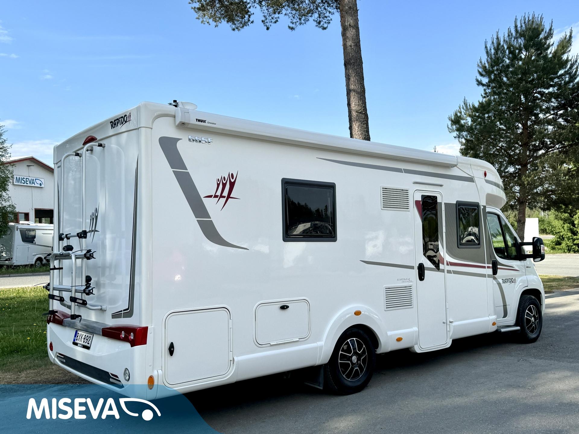 Erittäin hienokuntoinen Rapido huippupohjalla ja kattavasti varusteltuna. Mukavan matkanteon takeena tehokkaampi 150 hv- moottori ja automaattivaihteet. Tupla- akut, aurinkopaneeli ja invertteri parantavat käytettävyyttä sähköverkon ulkopuolella matkailtaessa.