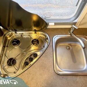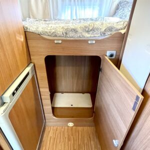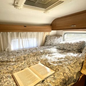 Autoon astuessa ensimmäisenä kiinnittää huomiota tilan tuntuun ja asuintilan avoimuuteen. Vaaleat sävyt korostavat erityisesti kokonaisuuden valoisuutta. Mukaan mahtuu neli henkinen perhe tai tilaa kaipaava porukka, kaikille löytyy autosta oma nukkumapaikka. Kääntyvät etupenkit mahdollistavat sen että koko kööri mahtuu saman aamupalapöydän ääreen. WC-/suihkutila on myös mukavan tilava isossa autossa, eikä siinä ole jouduttu tinkimään. Keittiöstä löytyy kaapistoa vaikka muille jakaa. Kaiken kokonaisuuden ja tilan kruunaa vielä iso takatalli. Ei jää pihapelit ja lempituolit matkasta, kaiken saa kyytiin tähän kiesiin.