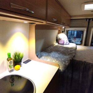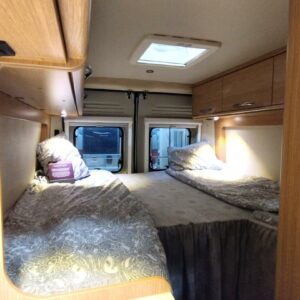 Hyvillä varusteilla oleva Roadcar pitkittäisillä erillisvuoteilla.