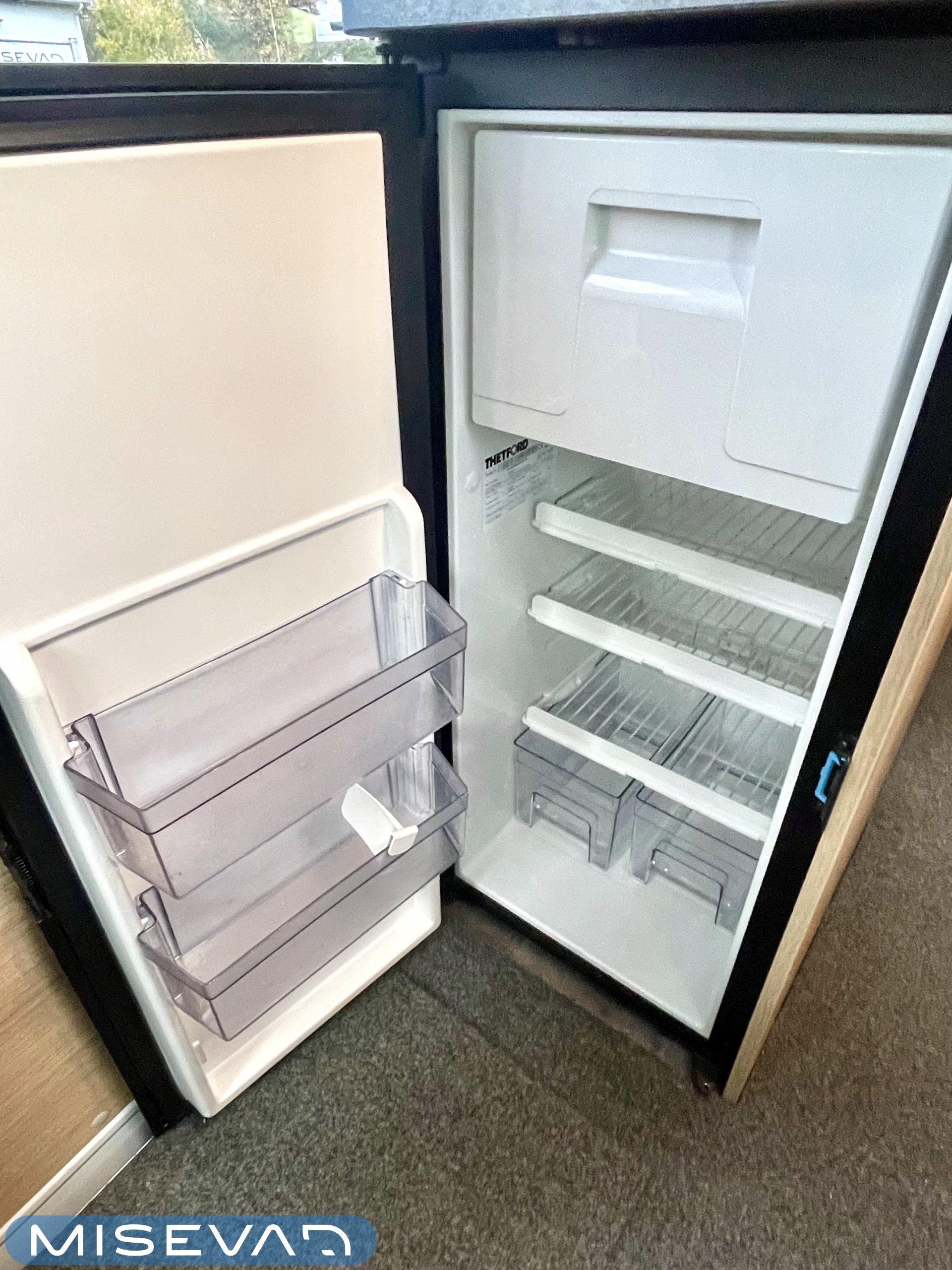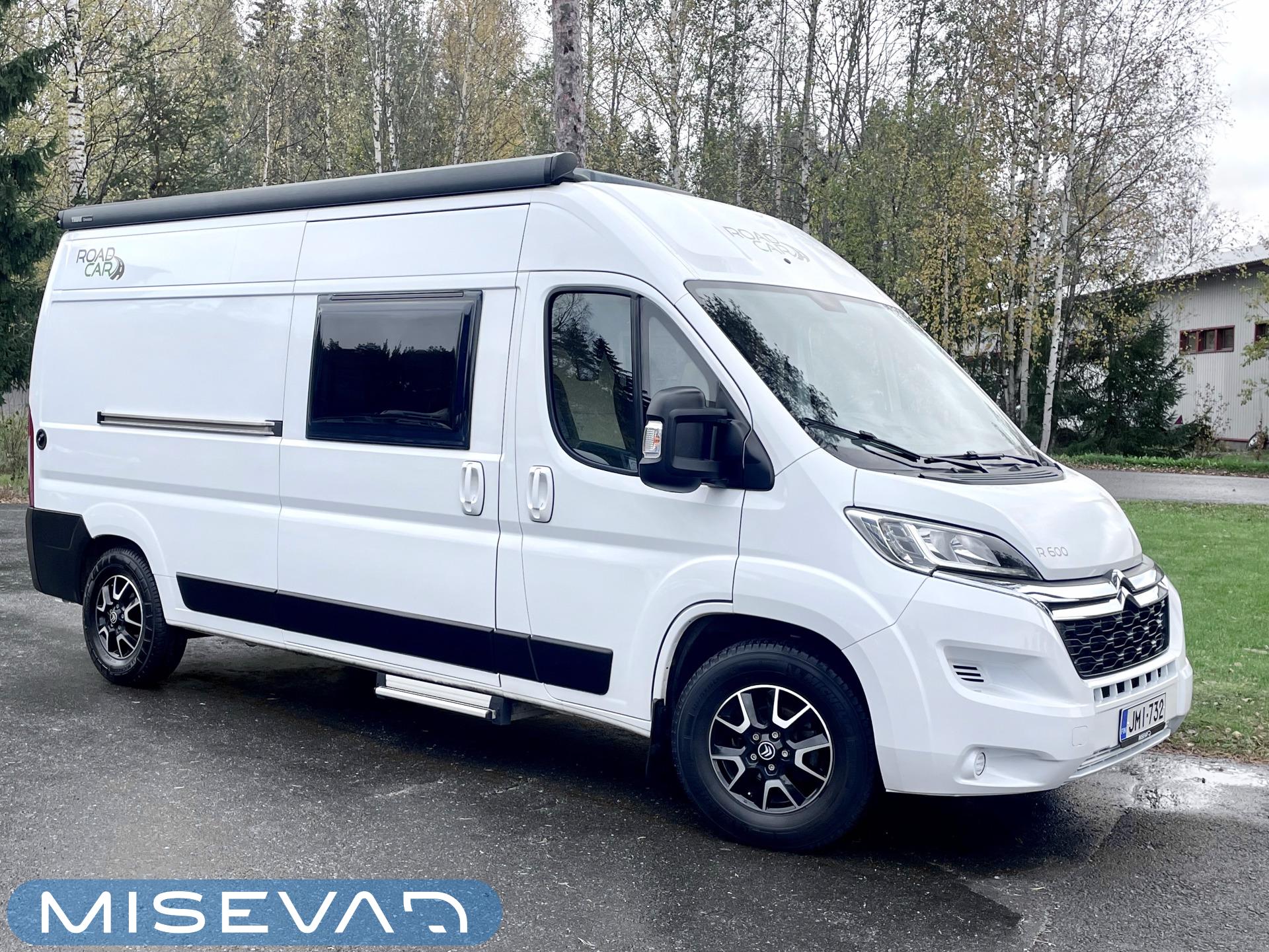 Siistillä pidolla ollut Roadcarin retkis seuraaviin seikkailuihin. Takana löytyy tuttuun tapan iso tavaratila ja parisänky. Sänky on helppo myös purkaa, jos tilaa haluaa käyttää tavaran kuljetukseen. Wc-/ Suihkutila on reilun kokoinen ja suihkuttelut onnistuu niin sisällä kuin ulkonakin. Keittiö tarjoaa retkeilyautoksi mukavasti kaappitila ja laskutila ruoanlaittoon on suorastaan iso. Jääkaapille pääsee keittiön sivustalta, joka on erityisen kätevä ominaisuus ruokavarastoja täydentäessä. Ostoskärryt saa suoraan auton viereen. Ruokailutilaa on neljälle ja pöydästä saa myös nukkumapaikan. Etupenkit on luonnollisesti kääntyvää sorttia. Säilytystilaa löytyy kätevästi myös taaimmaisen matkustajanpenkin takaa. 165 heppaa vie tämän Retkiksen varmasti vielä upeisiin seikkailuihin. Tule tutustumaan